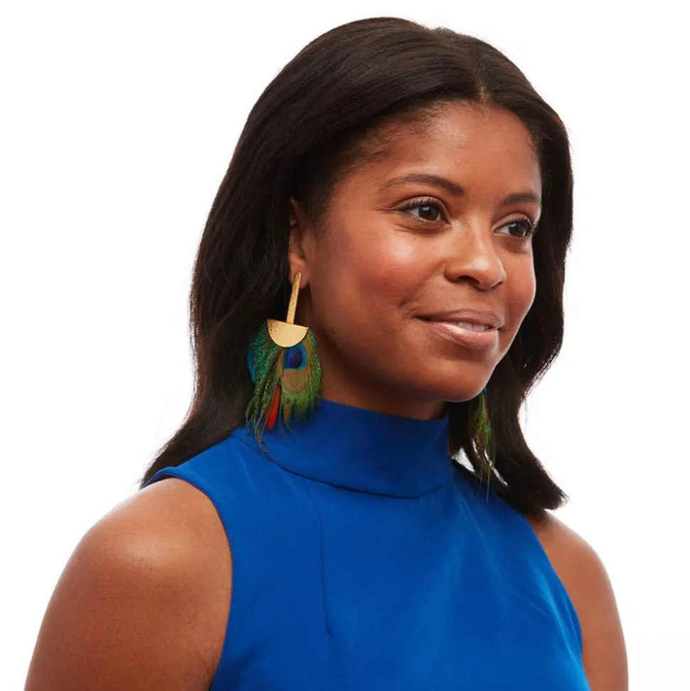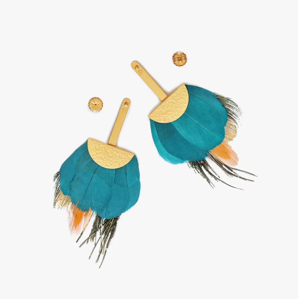Feathers for each pair of earrings are hand-selected giving each pair a unique coloring. All feathers used are all-natural and sustainably sourced. 24k Gold Plated stud with post push back. Suitable for sensitive ears (nickel-free and lead-free).