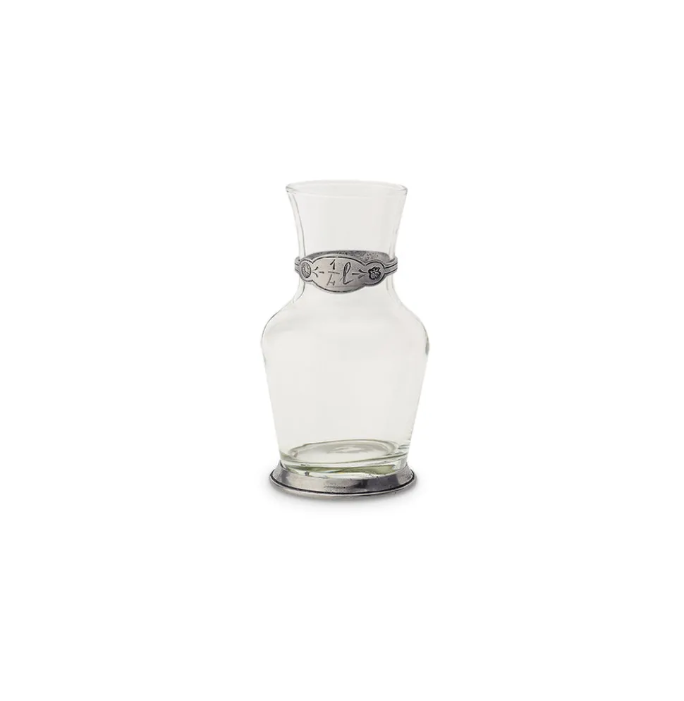 Created in 1995, Match single-handedly introduced America to the beauty of Italian pewter. Founder David Weiss carefully selects the finest workshops to produce effortless, versatile designs for kitchen, tabletop, and home interiors. The Glass Carafe, 1/2 Liter is handcrafted from lead-free crystal, with a pewter base and collar engraved with the volume each holds. The carafes were originally designed to hold and serve wine, but found they also make elegant containers for casual seasonal cuttings like lilacs, cherry blossoms, or tulips.