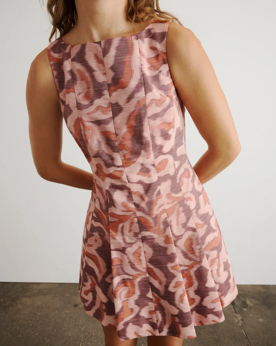 Creating clothing that inspires confidence, celebration, and community, Tanya Taylor is a New York-based womenswear brand whose mission is to provide practicality and style to a range of ready-to-wear in inclusive sizes. Each collection is thoughtfully designed through the artful use of color, texture, and original hand-painted prints. The Glenda Dress in Mahogany & Sugarcane Multi brings playful structure to the everyday mini. Designed with a bateau neckline, paneled seaming, and a feminine fit-and-flare silhouette, this printed style offers charm, polish, and just the right edge for a standout seasonal statement.