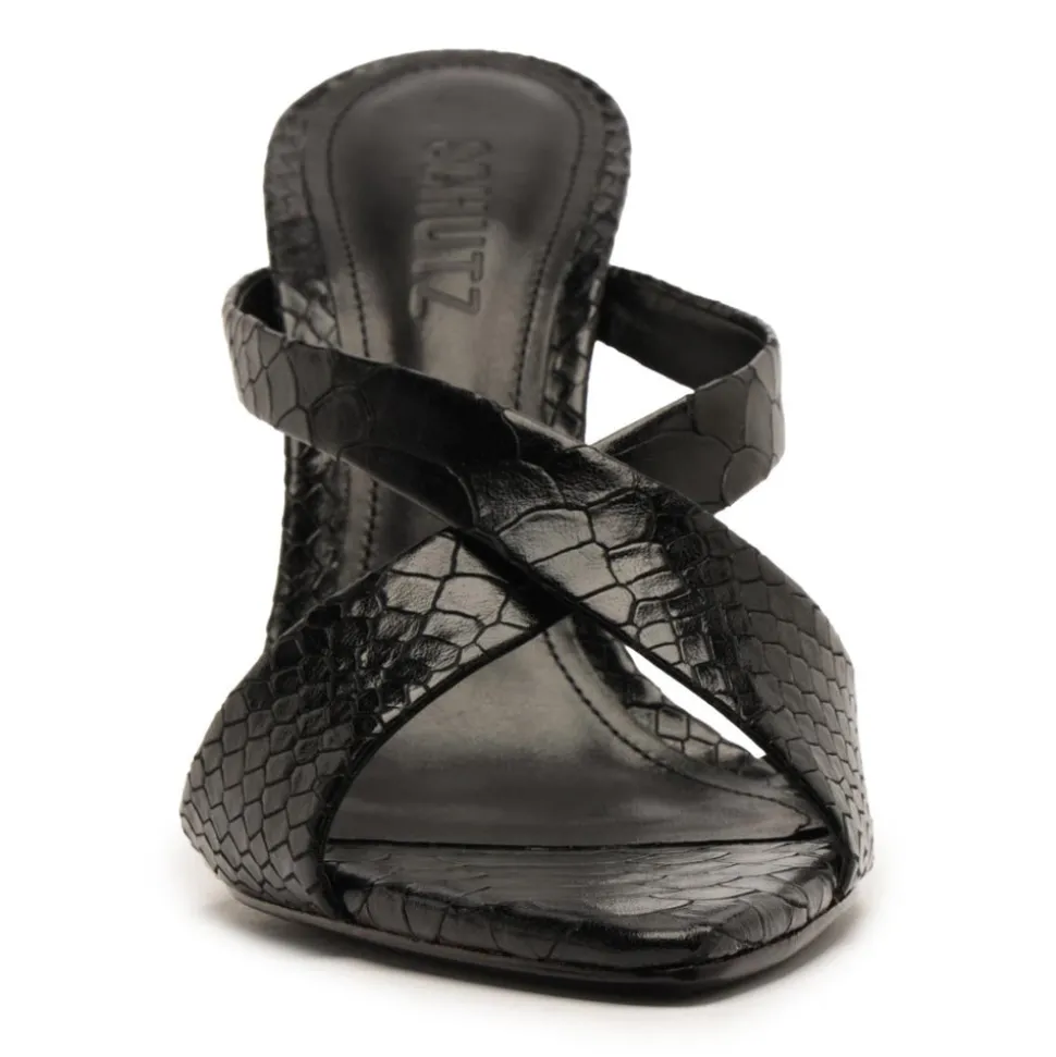 Founded in 1995 by Alexandre Birman, Schutz redefines attainable luxury with its stylish footwear. With each new release, the brand delivers of-the-moment collections, defined by confident, bold designs around which entire outfits can be built. The Glenda Leather Sandal in Black is crafted from smooth leather and set on a high block heel for grounded elevation. Crossover straps create fluid movement within the bold silhouette, resulting in a heel with unmistakable presence. Designed to move seamlessly from day to night, this style matches every step with confident energy.