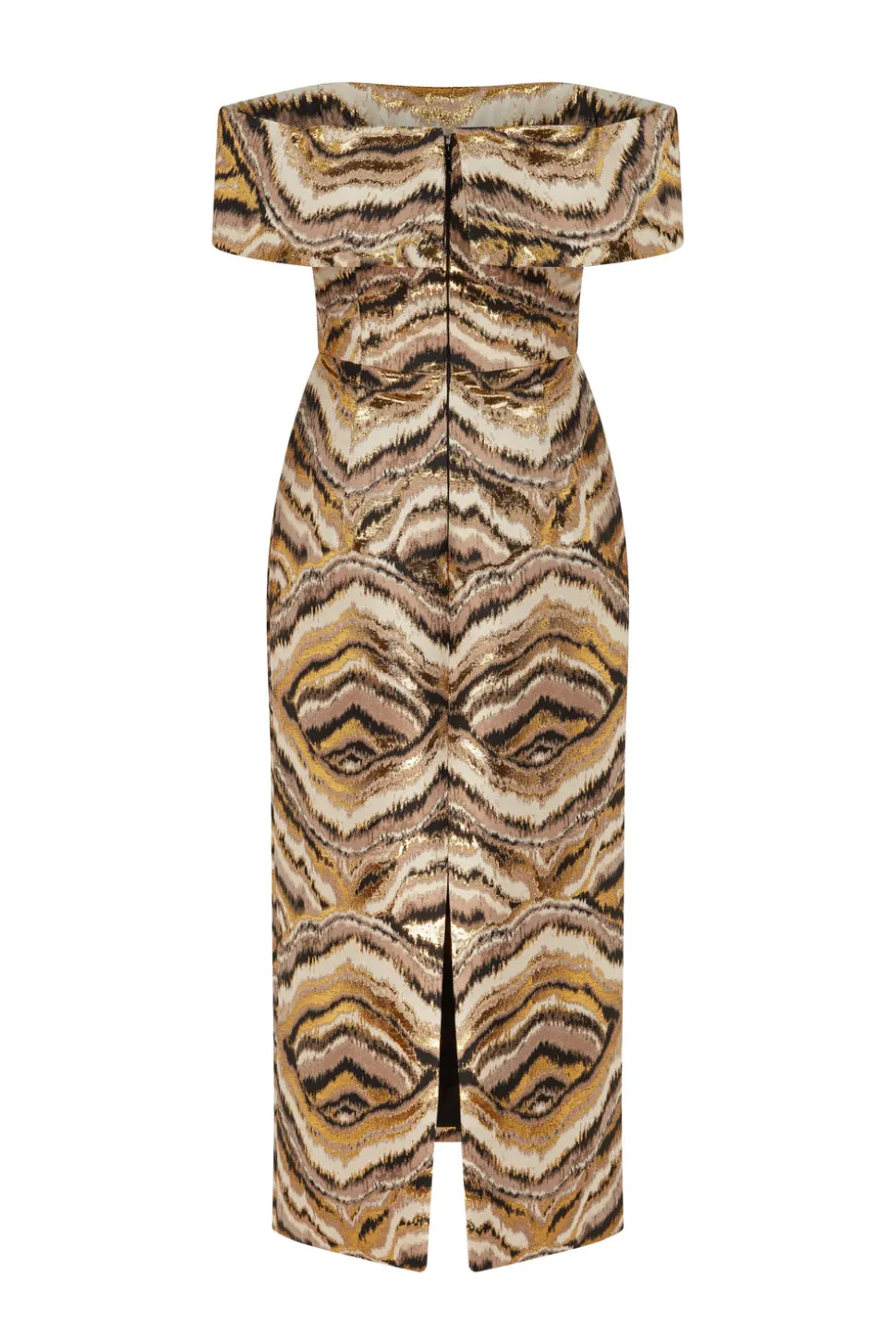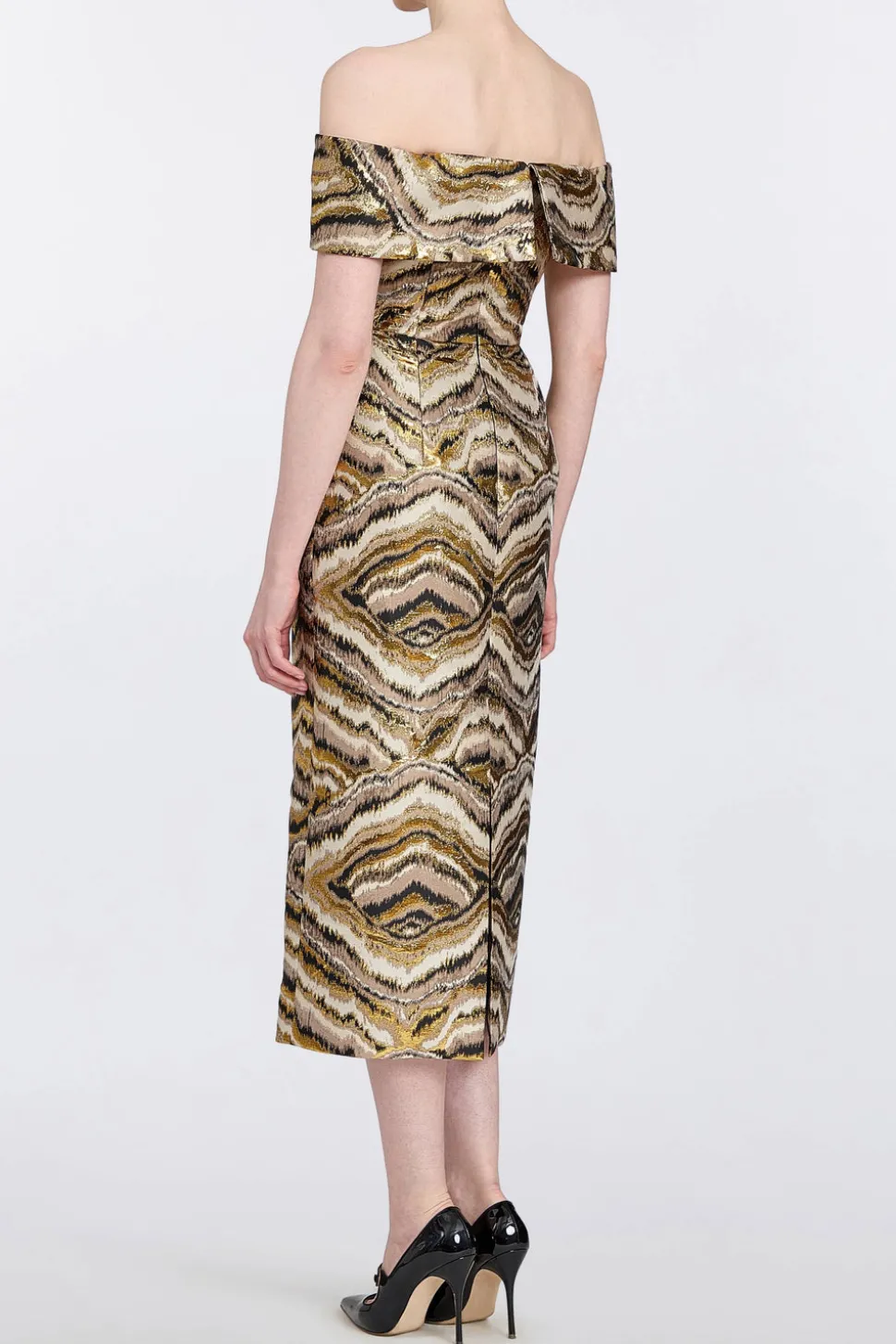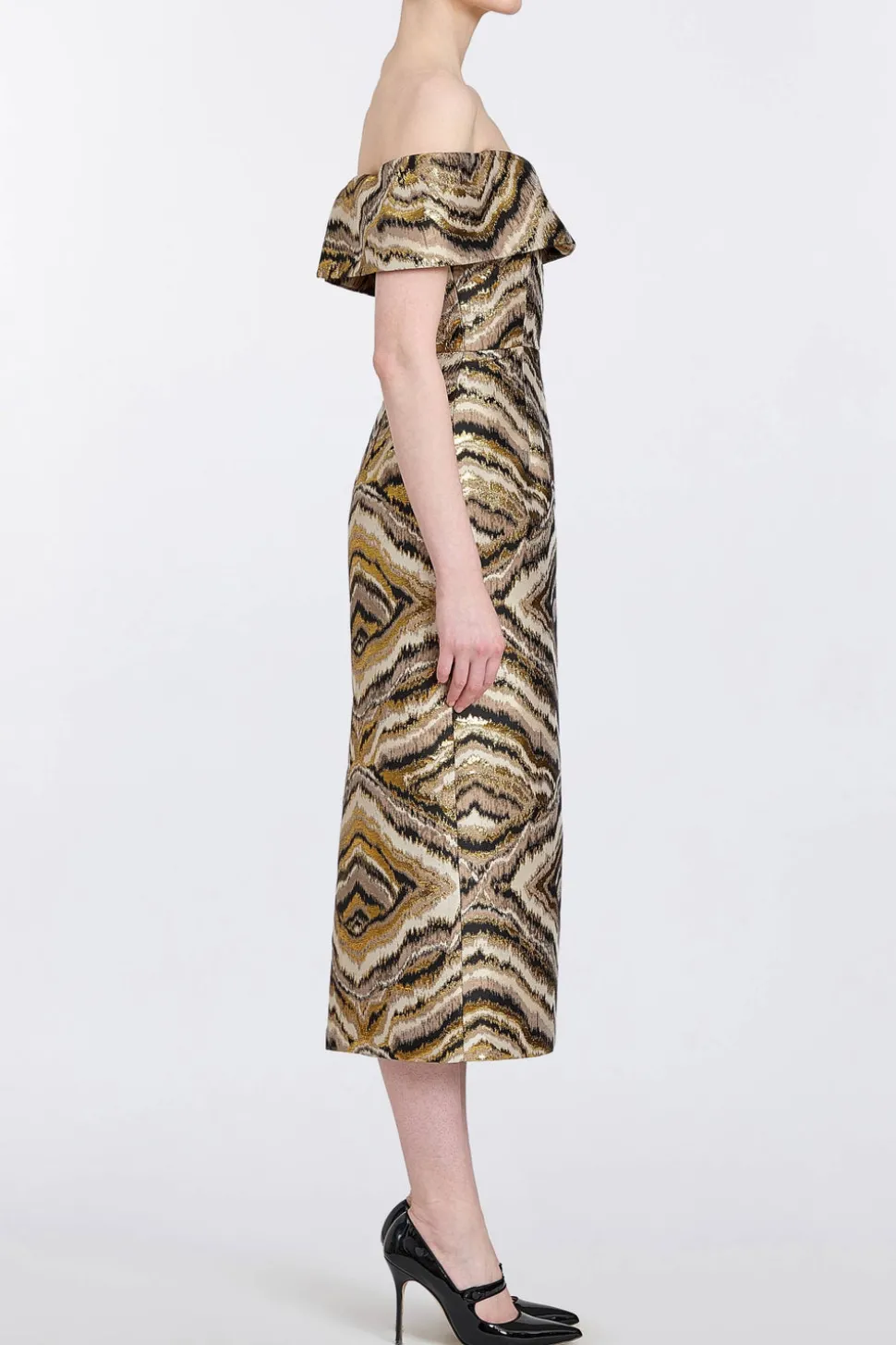 Gloria Metallic Jacquard Off-The-Shoulder Dress