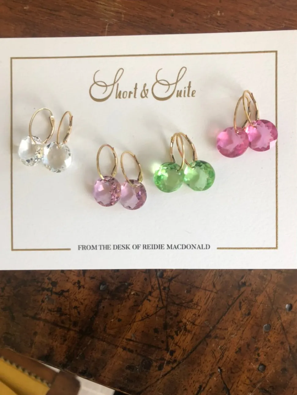 After working in luxury fashion, Brock Collection alum Reidie MacDonald founded her jewelry label Short & Suite during the second week of lockdown in March of 2020. With fans like Bella Hadid and Emily Ratajkowski, each collection is inspired by MacDonald’s love of travel; the gem colors in particular emulate far away places she has traveled to or ones that she longs to visit. As seen on celebrities like Bella Hadid, January Jones, Candace Cameron Bure, and Tinx, these earrings feature a single lightweight gem that gracefully swings within the hoop, creating a mesmerizing floating effect.
