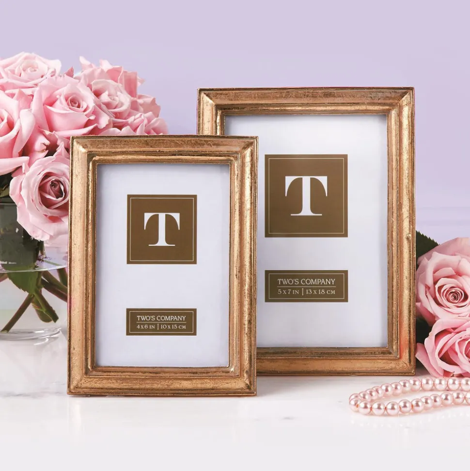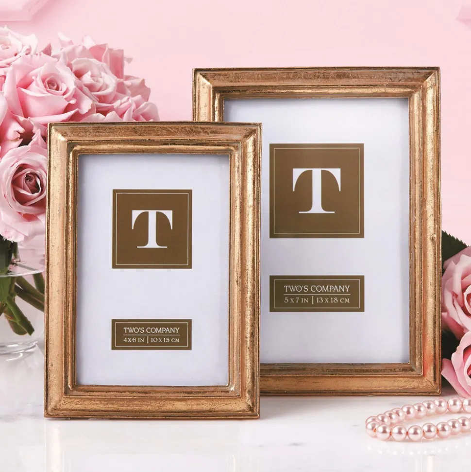 Started in a couple’s Westchester home in 1969, Two’s Company is a single destination for a wide range of stylish contemporary gifts, homewares, and accessories. From chinoiserie dish collections to accents for the sofa, the brand’s offerings are once sophisticated and accessible, making it an ideal gifting source for weddings, babies, new homes, birthdays, and more. Boasting a rich and luxurious finish, the Gold Leaf Photo Frame, Set of 2 any wall, shelf, or tabletop. An elegant and sophisticated frame to host your most treasured moments and memories.