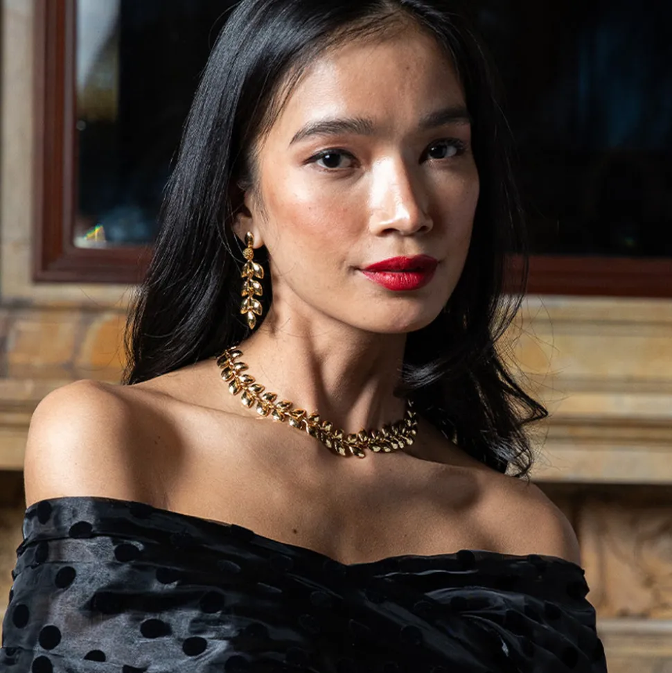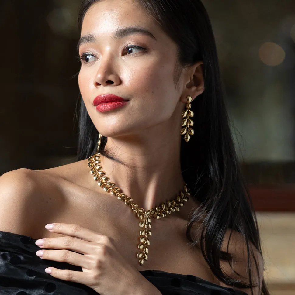Half-Parisian, half-Texan, Capucine De Wulf’s unique upbringing was the inspiration for her namesake jewelry line. Her accessories combine French romance with an American sensibility. The Golden Laurel Dangle Earrings evoke the timeless elegance of ancient mythology—crafted in gleaming gold with laurel wreath motifs reminiscent of Helen of Troy’s legendary beauty. Exquisitely simple yet striking, this versatile pair adds a radiant touch of sophistication to any ensemble.