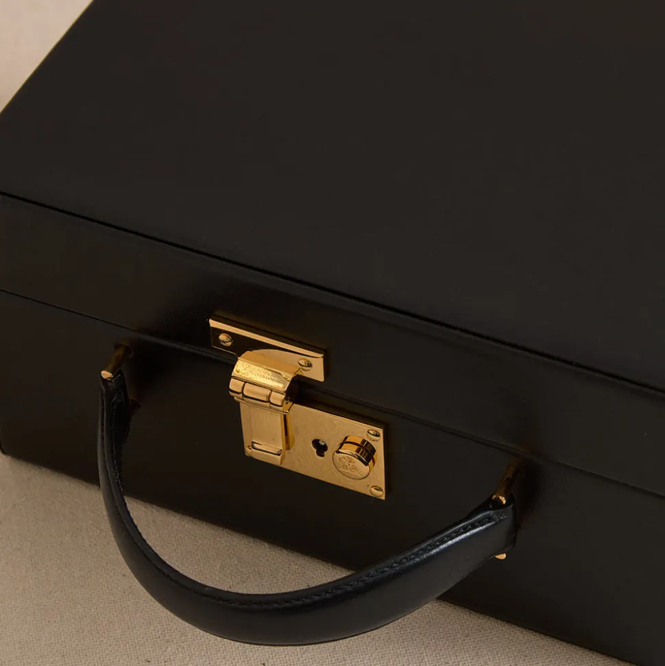 Founded in 1845 in Boston, Mark Cross is the quintessential American luxury brand with an uncompromising commitment to quality, elevated details, and nonchalant reworking of classic silhouettes. The signature shapes are discrete icons of pop culture, notably the overnight valise carried by Grace Kelly in Rear Window, designed by Gerald Murphy, the former president and ‘Lost Generation’ figurehead. The Grace 21 in Smooth Calf Black is a modern evolution of the archival classic, offering timeless sophistication with a slightly roomier silhouette. Meticulously handcrafted in Italy, it features smooth calf leather, a structured box frame, and an interior zip pocket for added functionality.
