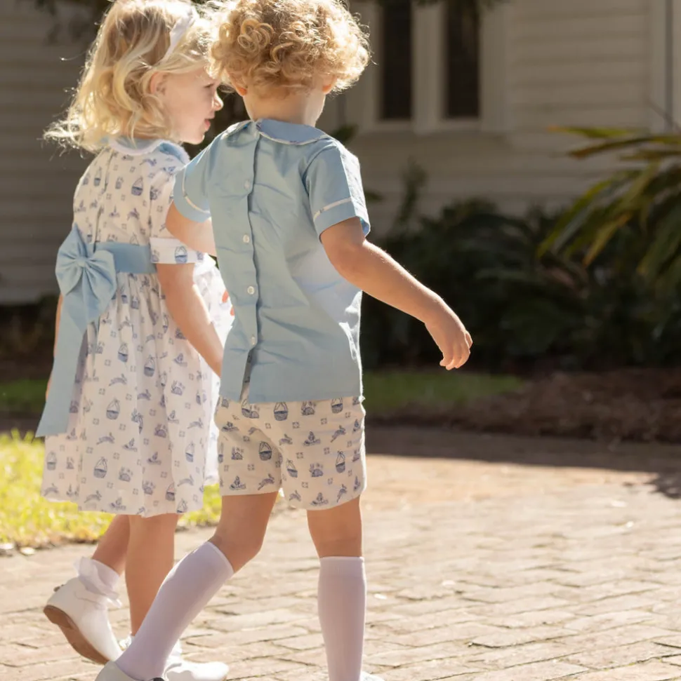 A celebration of the spirit of girlhood, the updated classics from Henry Duvall are curious, imaginative, playful and sweet. Full of character and playful details, these are easy to care for clothes that boys will love. The ideal formal Easter holiday look, the Grace Dress in Heirloom Delft features a dutch blue sash and collar. Features a pre-tied bow at the back that will stay in place and always look perfectly tied.