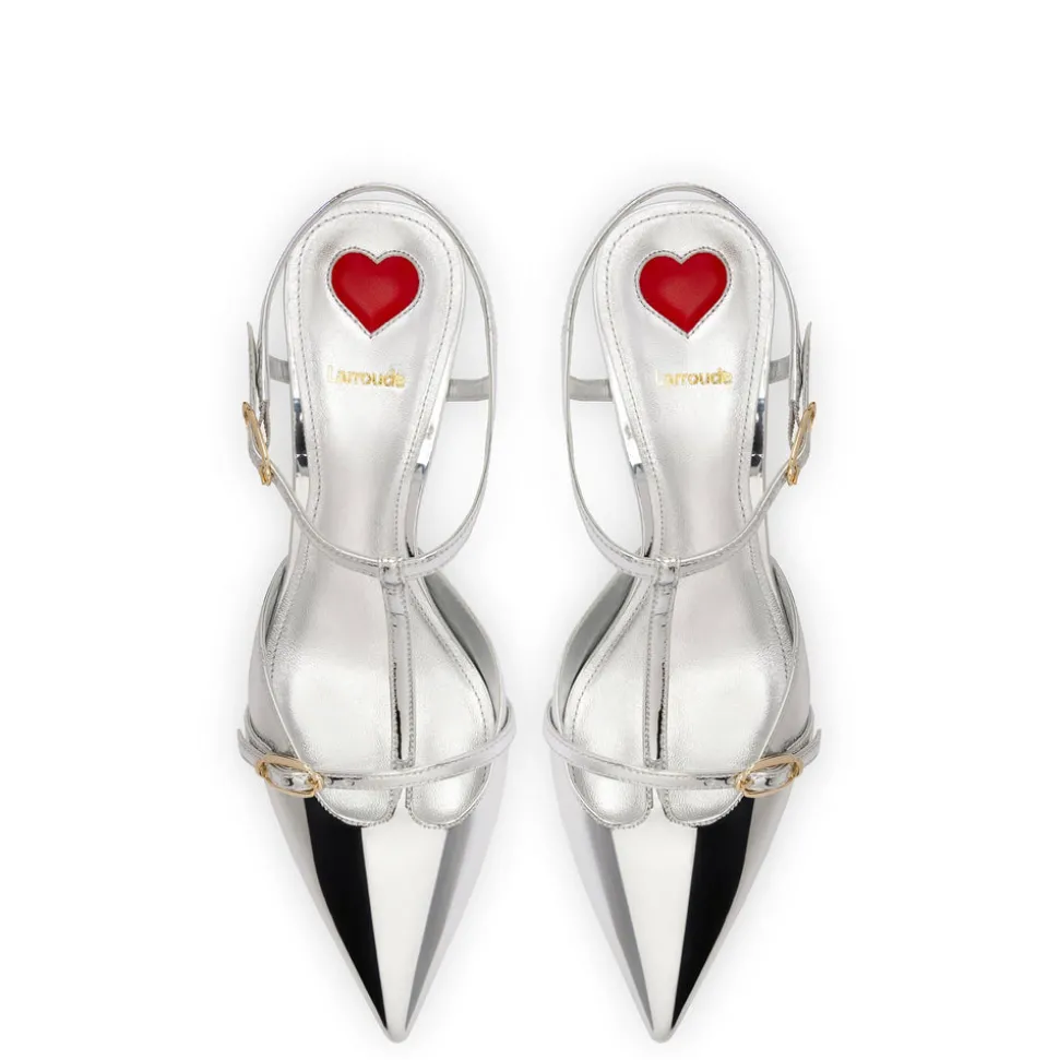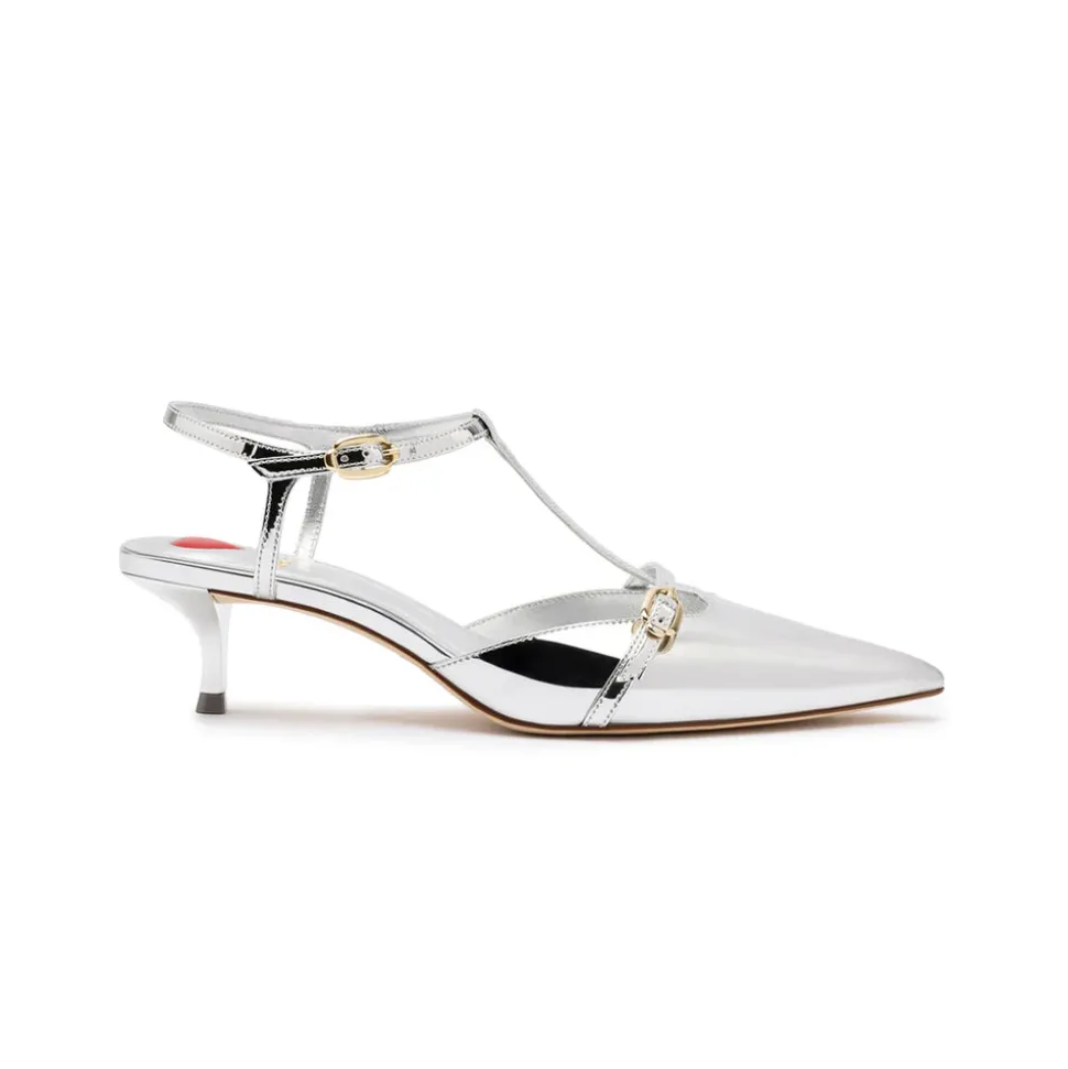 Bold colors, playful patterns, and chic silhouettes are hallmarks of Larroudé, a shoe brand born of the pandemic from industry veterans and husband-and-wife team Marina and Ricardo Larroudé. Manufactured in Brazil, Larroudé shoes are designed with the consumer and community in mind, never compromising on style, fit, and quality. A riff on the brand’s bestselling Ines, with its crossover buckle and ladylike silhouette, the Grace Pump In Silver Specchio adds a T-strap detail that hugs the foot and eases from the sleek, pointy toe front into an elegant flat. From the office to cocktails and beyond.