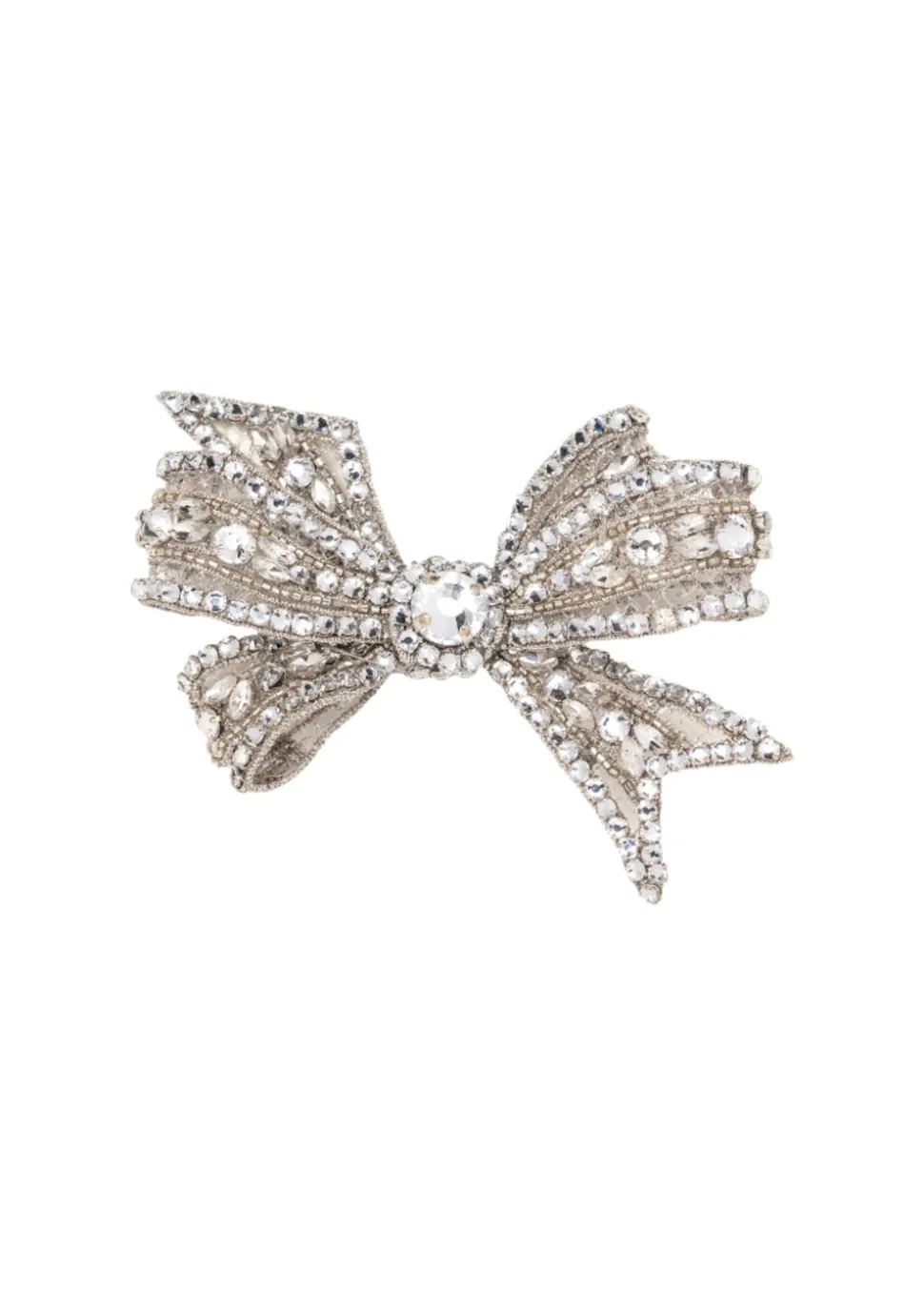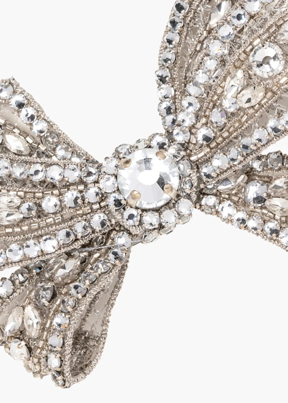 Hand-embroidered Czech crystal bow on steel brooch pin closure. Handmade in New York.