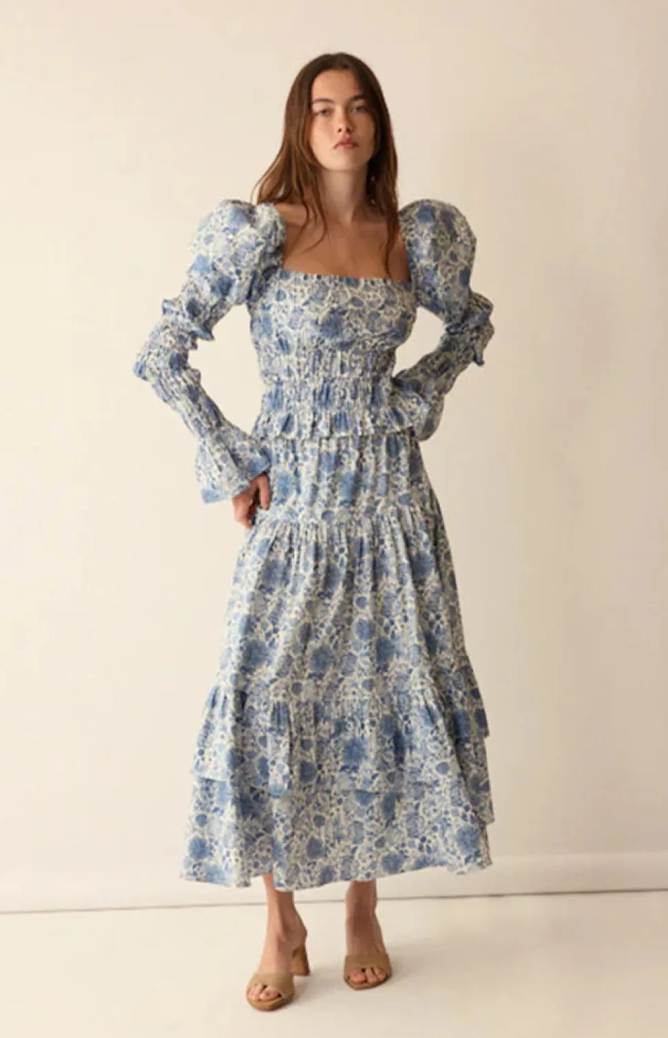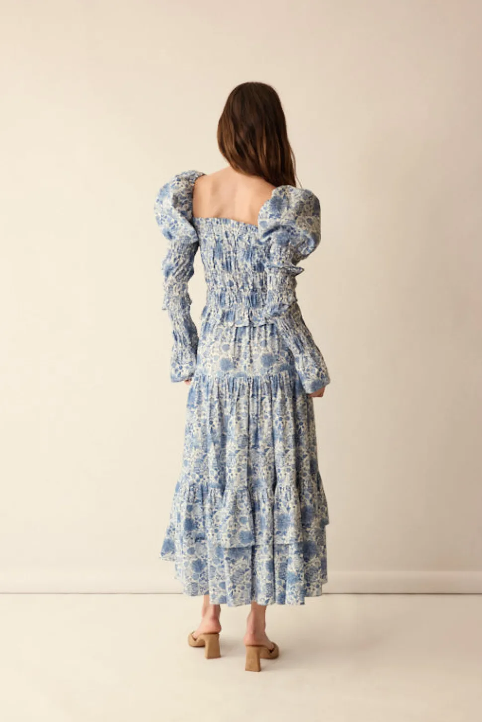 Loulou, founder of Loulou La Dune, extends her refined feminine touch from interior design and tableware into the realm of ready-to-wear fashion. Recognizing the desire for beautifully crafted, effortless, and chic clothing, she has created a capsule collection that integrates elegance and ease into everyday wear. Made for year-round wear, the Gracie Top in Blue features distinctive puff shoulders and a smocked floral bodice, creating a flattering silhouette that enhances your natural shape. The long smocked sleeves offer multiple styling options, allowing you to wear them off the shoulders or as three-quarter length sleeves.