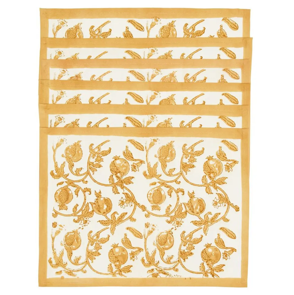 Idyllic landscapes, sumptuous colors, and the vibrant beauty of Southern France describes Couleur Nature. This brand of hand-painted table linens aims to bring a Provençal sense of effortlessness, rich culture, and joie de vivre to your life and home—no matter where you live. Featuring a delicately intertwined floral pattern with iconic mustard pomegranates atop a white background, the Granada Mustard Mats in Mustard, Set of 6 makes a tranquil, richly colored complement to any table. Suitable for formal, festive, and casual events alike, this high-quality linen foregrounds a classic motif with French country styling, and has been hand-printed by skilled artisans using a time-honored technique. The fine linen table placemats are a great way to refresh your table, adding color and vibrancy to every day or formal settings.