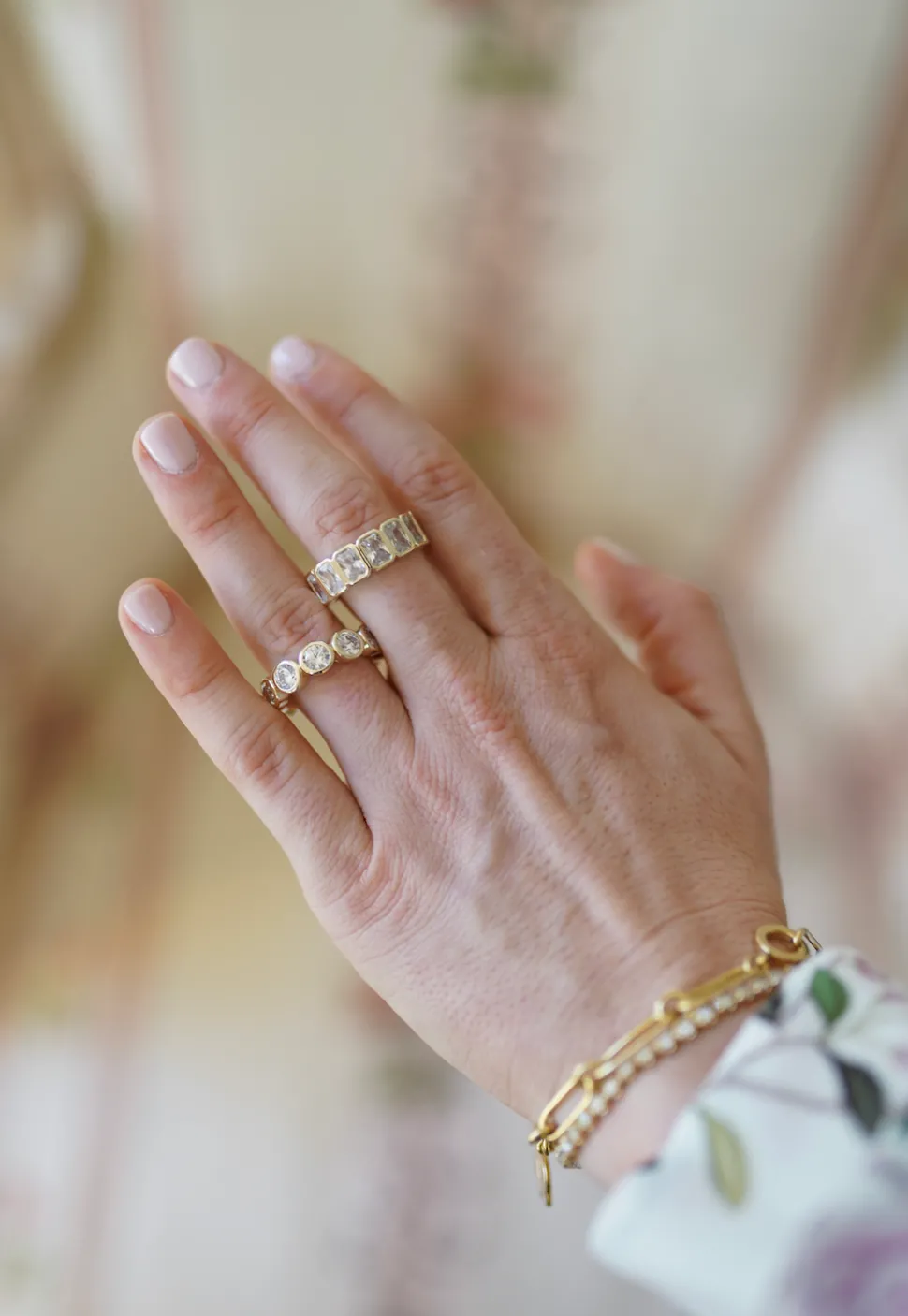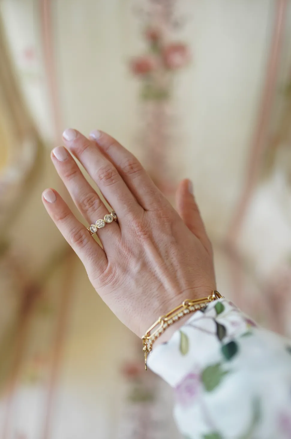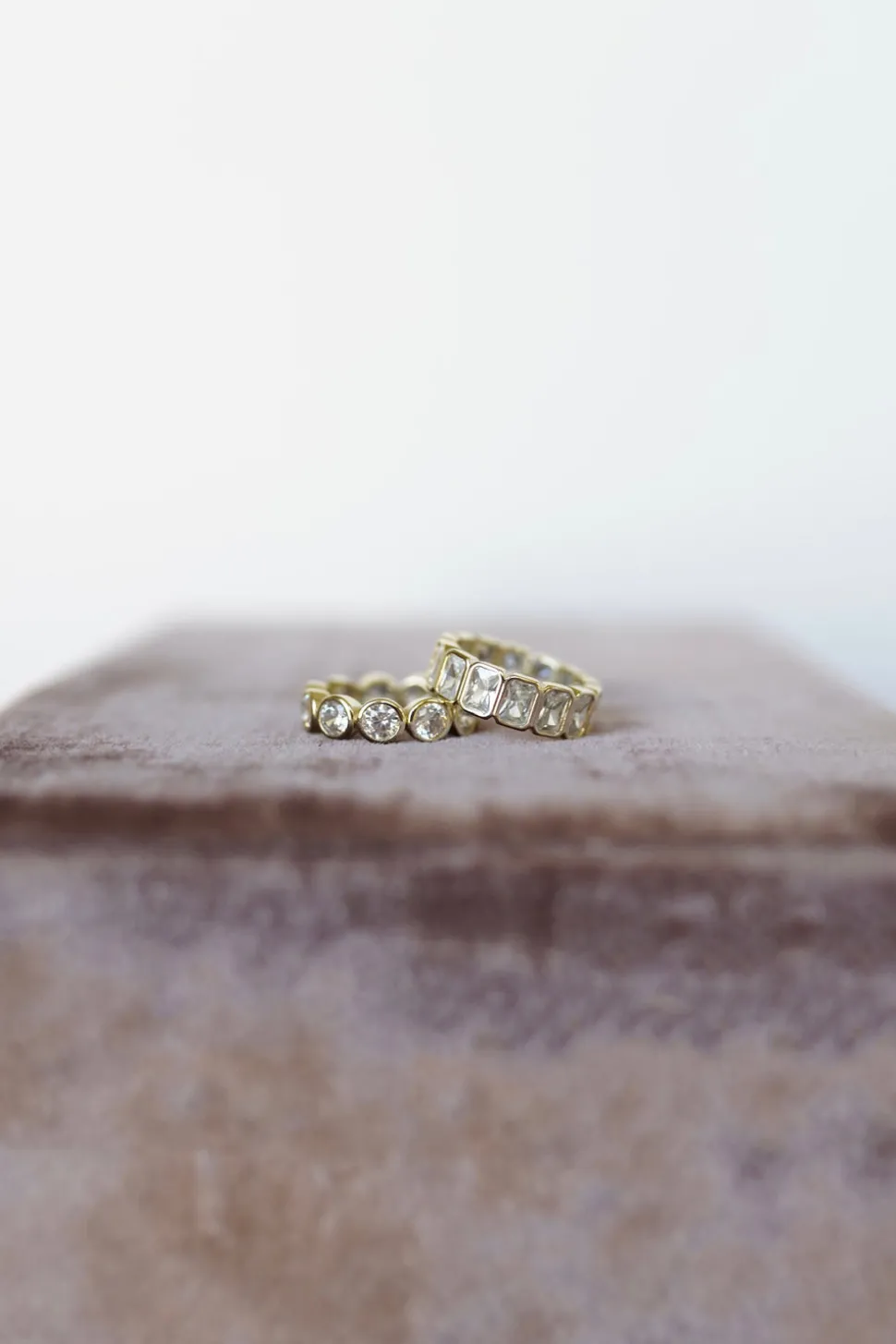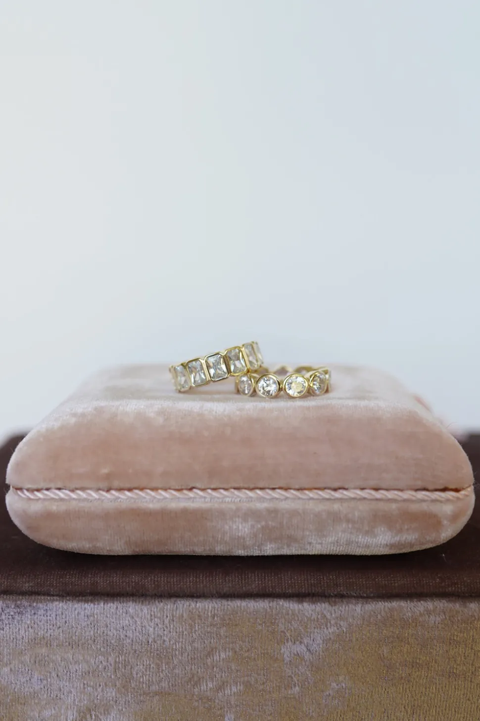 OTM bride Nicola Bathie’s unique jewelry pieces are art for your ears. Inspired by her hometown of Johannesburg, South Africa, her current city of San Antonio, Texas, and all of her travels in between, Bathie’s accessories evolve with the seasons but are also timeless statements that can be worn year after year. Delicate and dainty, the Grand Blanc Bezel Band is a versatile piece that can be stacked or worn on its own for a singular statement.