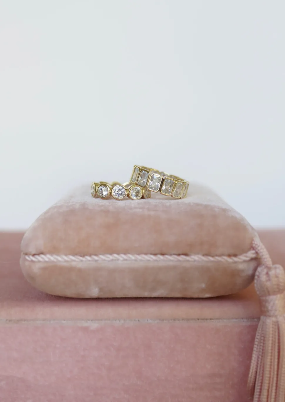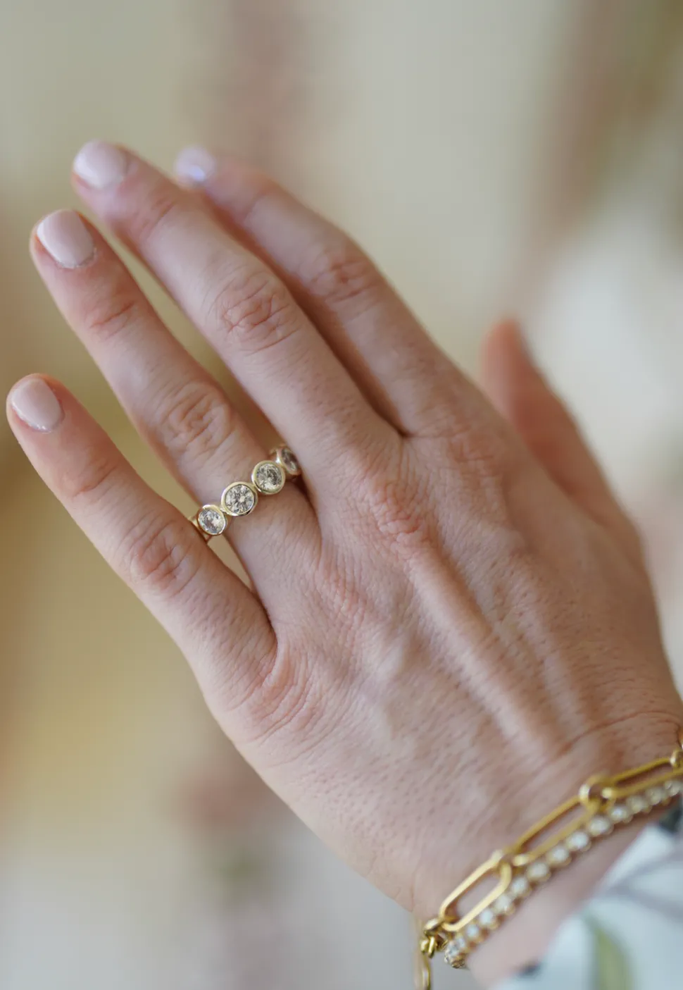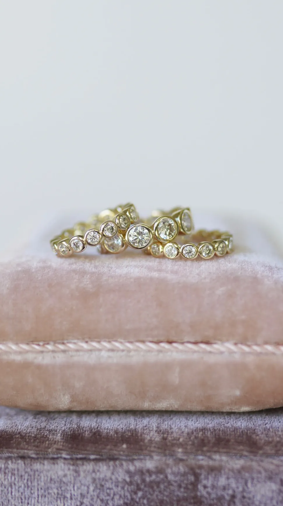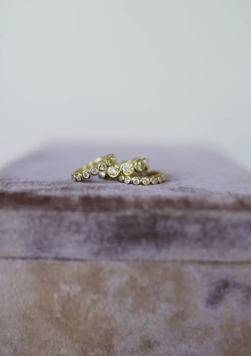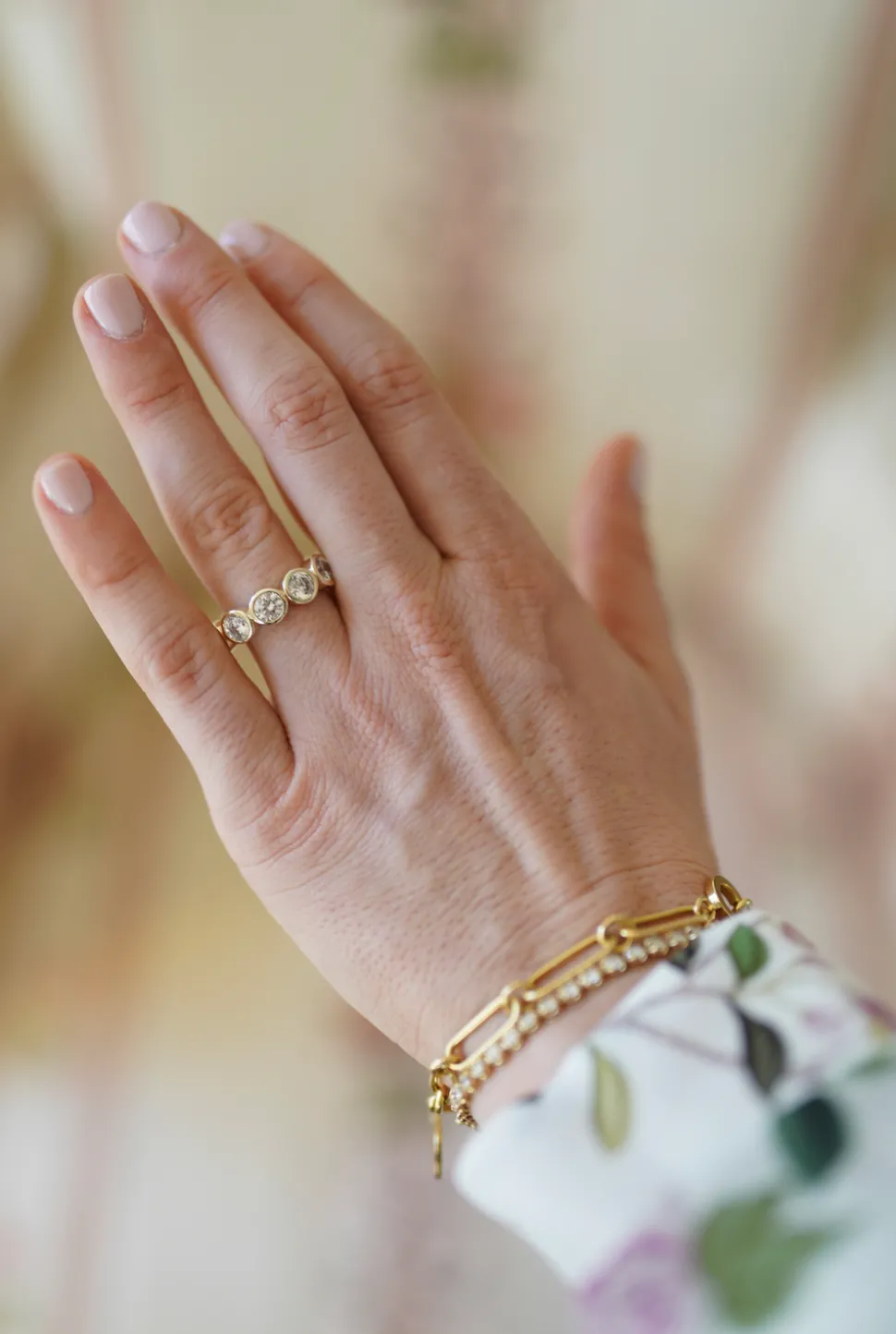OTM bride Nicola Bathie’s unique jewelry pieces are art for your ears. Inspired by her hometown of Johannesburg, South Africa, her current city of San Antonio, Texas, and all of her travels in between, Bathie’s accessories evolve with the seasons but are also timeless statements that can be worn year after year. Delicate and dainty, the Grand Blanc Bezel Band is a versatile piece that can be stacked or worn on its own for a singular statement.