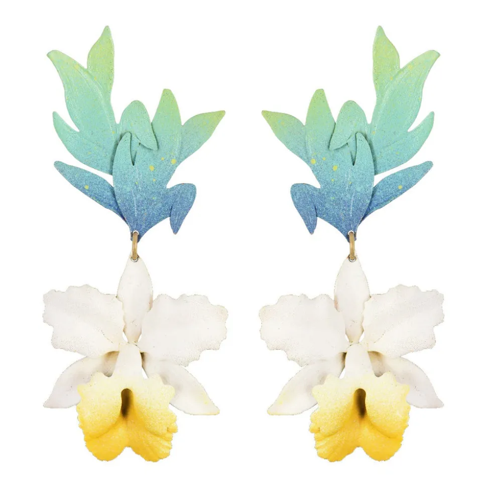 Founded in 2002 by designer Jade Gedeon, We Dream In Colour is powered by a team of women at their North Shore studio in Boston. Each piece of jewelry is assembled by hand, and the company works hard to operate in a socially conscious fashion every step of the way while creating their whimsical, elegant designs. The Grand La’akea Orchid Earrings feature carefully crafted brass blooms that are layered with hand-painted washes of pigment in these lush, tropical statement-makers.