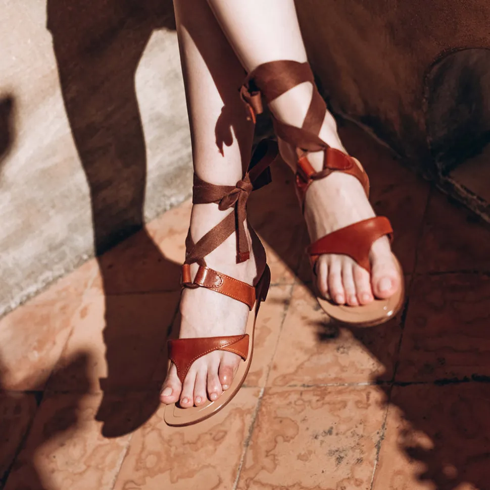 Handcrafted in Italy’s Amalfi Coast, the Grear is an elegant lace-up sandal in saddle vachetta leather. Featuring soft cotton straps that can be tied in the classic Grecian style, these shoes are casually chic. Elevate and complement every breezy outfit of the summer with the Grear.
