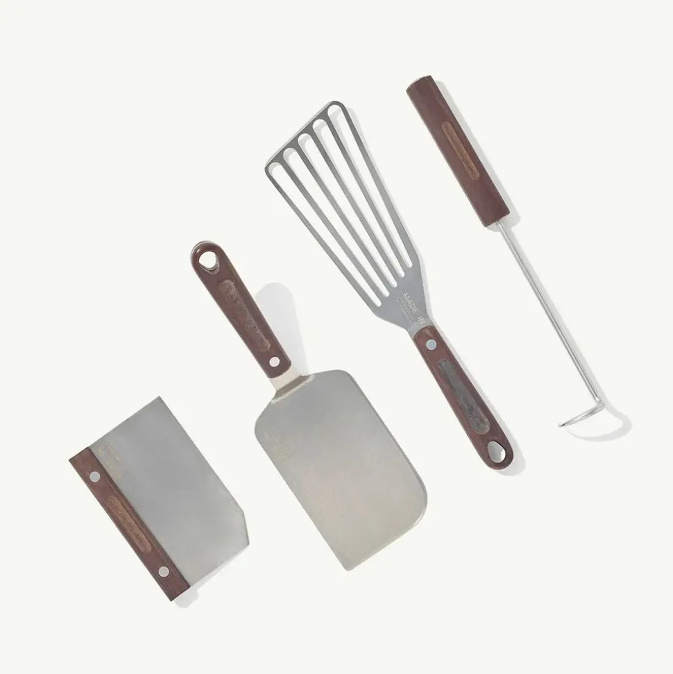 Born out of a 100-year old, family-owned restaurant supply business, Made In brings restaurant-quality, performance kitchenware to home cooks around the world. The brand sources the highest quality raw materials and designs products to the exacting standards of the world’s best chefs. During grill season, upgrade your backyard (or indoor) BBQ setup with a set of chef-quality tools. Each set contains a Griddle Spatula, Bench Scraper, Fish Spatula, and Pigtail Turner, so you can flip, turn, lift, and scrape with ease.