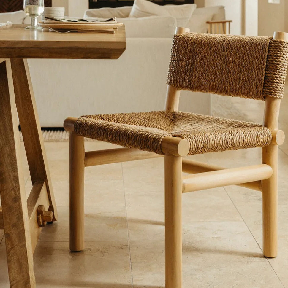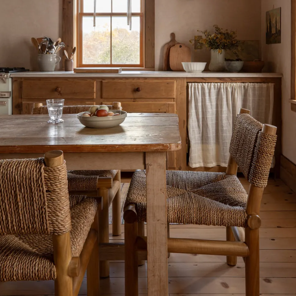 At once beautiful and timeless, Woven designs mindfully designed pieces for your home and beyond. Woven invites you to create spaces that are layered and natural—an expression of you. Inspired by Hacienda kitchens from rural Spain to colonial Mexico, the Hacienda Dining Chair invites long, easeful meals and friendly gatherings. Mixing organic forms with high texture for a rustic, lived-in feel, the chair’s generous handwoven natural seagrass seat finds support in a chunky dowel beechwood frame.