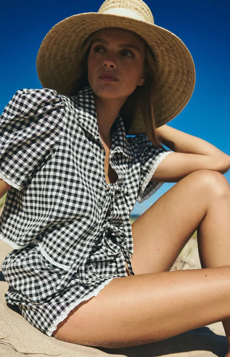 Louise New York creates its collection with the past and present in mind. Inspired by timeless glamour instead of trends, when you slip into a Louise New York dress, you carry all the confidence and carefree attitude that femininity can acclaim. The Hanna Set in Black Gingham is the ultimate throw-on-and-go look for sunny days. Made from crisp cotton, it features puff sleeves, sweet tie-front details, and contrast lace trim for a playful, vintage-inspired finish. Style the pieces together or wear them separately to mix and match all season long.