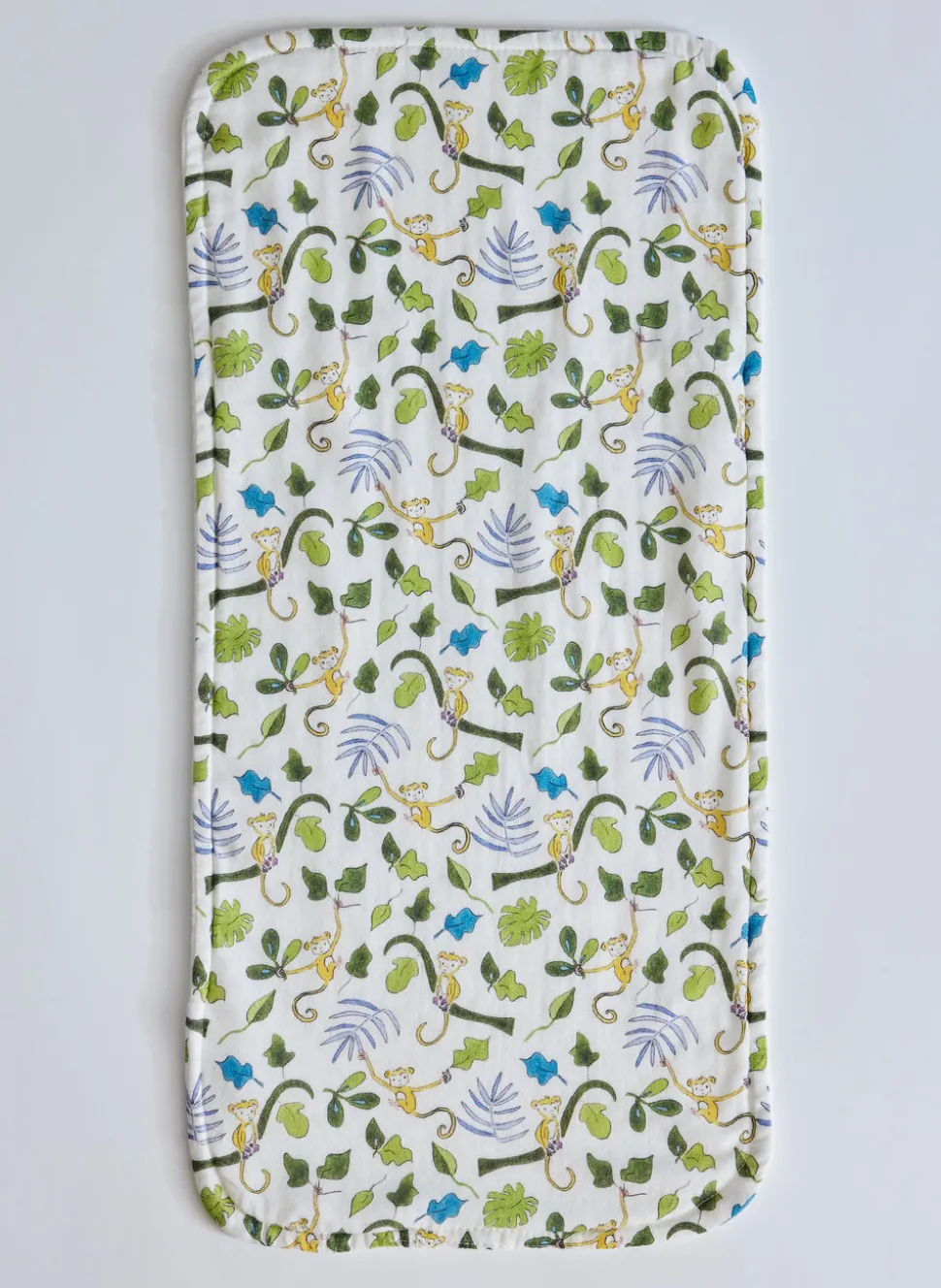 Created to be timeless, sustainable and whimsical, Timo & Violet creates luxury bedding and bath linens for your littlest ones. Looking outward from the very beginning, they develop soft fabrics that are safe for both babies’ skin and the earth, decorating them with artwork by women from around the globe. Crafted in a buttery soft cotton terry layer on the back and a beautiful printed muslin front, the pretty, absorbent Happy Monkey Bib and Burp Cloth Set will have both baby and parent looking forward to meal time. Make it extra special with a monogram.