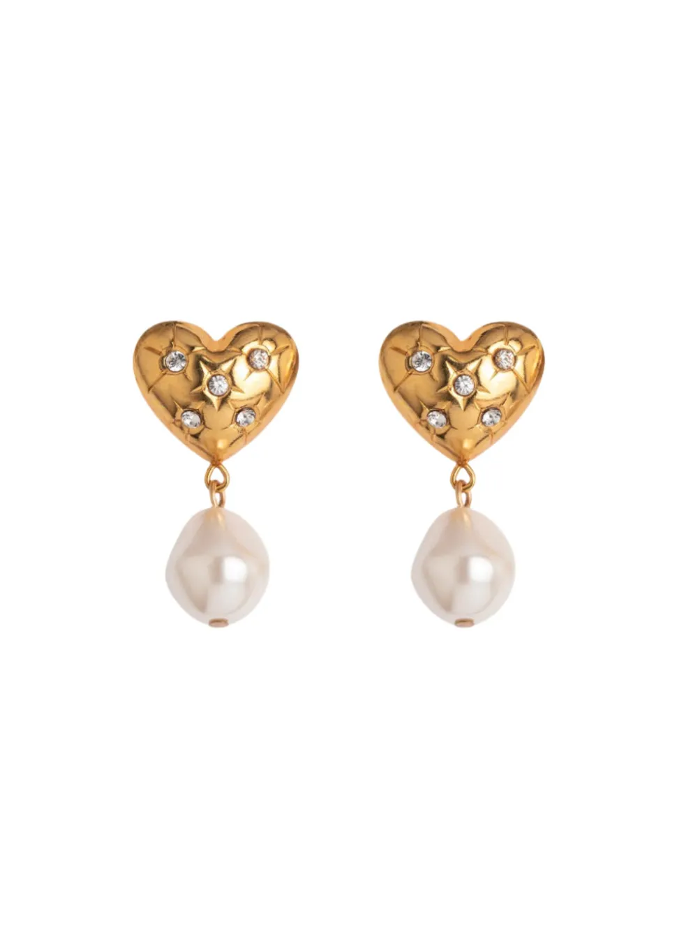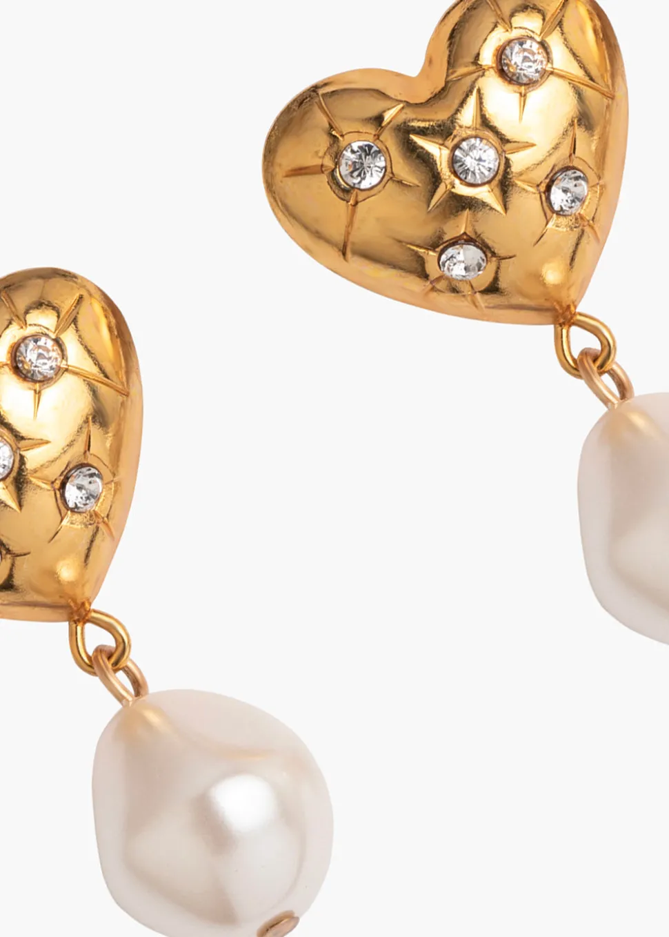 “Everything has a story to tell,” says Jennifer Behr, the founder of her namesake luxury hair accessory brand that has blossomed into one of New York City’s foremost ateliers for jewelry, as well as bridal. In every crystal, pearl, and ribbon, you’ll find the utmost quality and a sense of romance, as each piece reveals a modern interpretation of centuries-old regalia. We love pearls for the sophisticated elegance they add to any design. The Hayden Earrings in Crystal Antique Gold, where baroque pearls dangle gracefully from the sweetest crystals-studded hearts. Antique gold plated brass adds to the timeless elegance of this versatile pair.