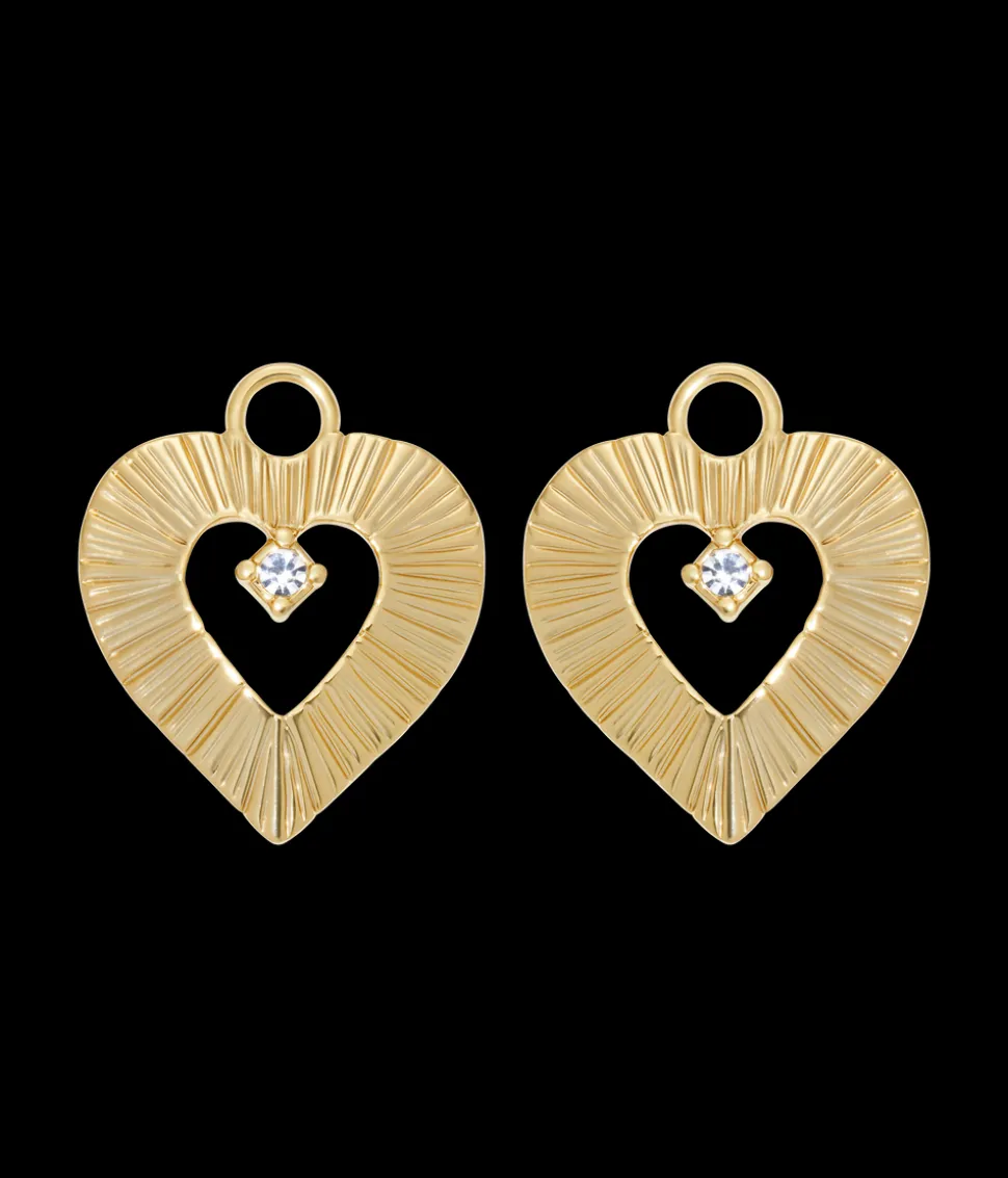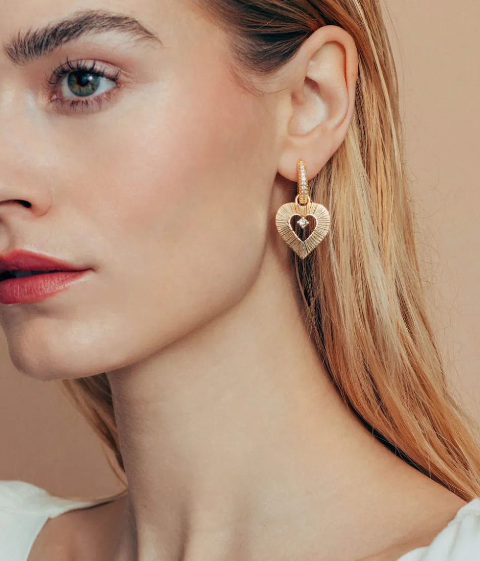 Loren Barham founded her jewelry line in 2005 as a means to reconnect with the vintage jewels that inspired her as a child. Today, the dynamic, artistic, original pieces of Loren Hope, designed at their flagship store in Newport, Rhode Island, serve as a bridge between nostalgia and thoroughly modern women everywhere. Dress up your Huggie Hoops with the textured, golden heart charms. Intentionally designed for mixing, matching and layering your look.