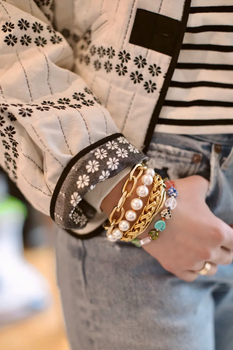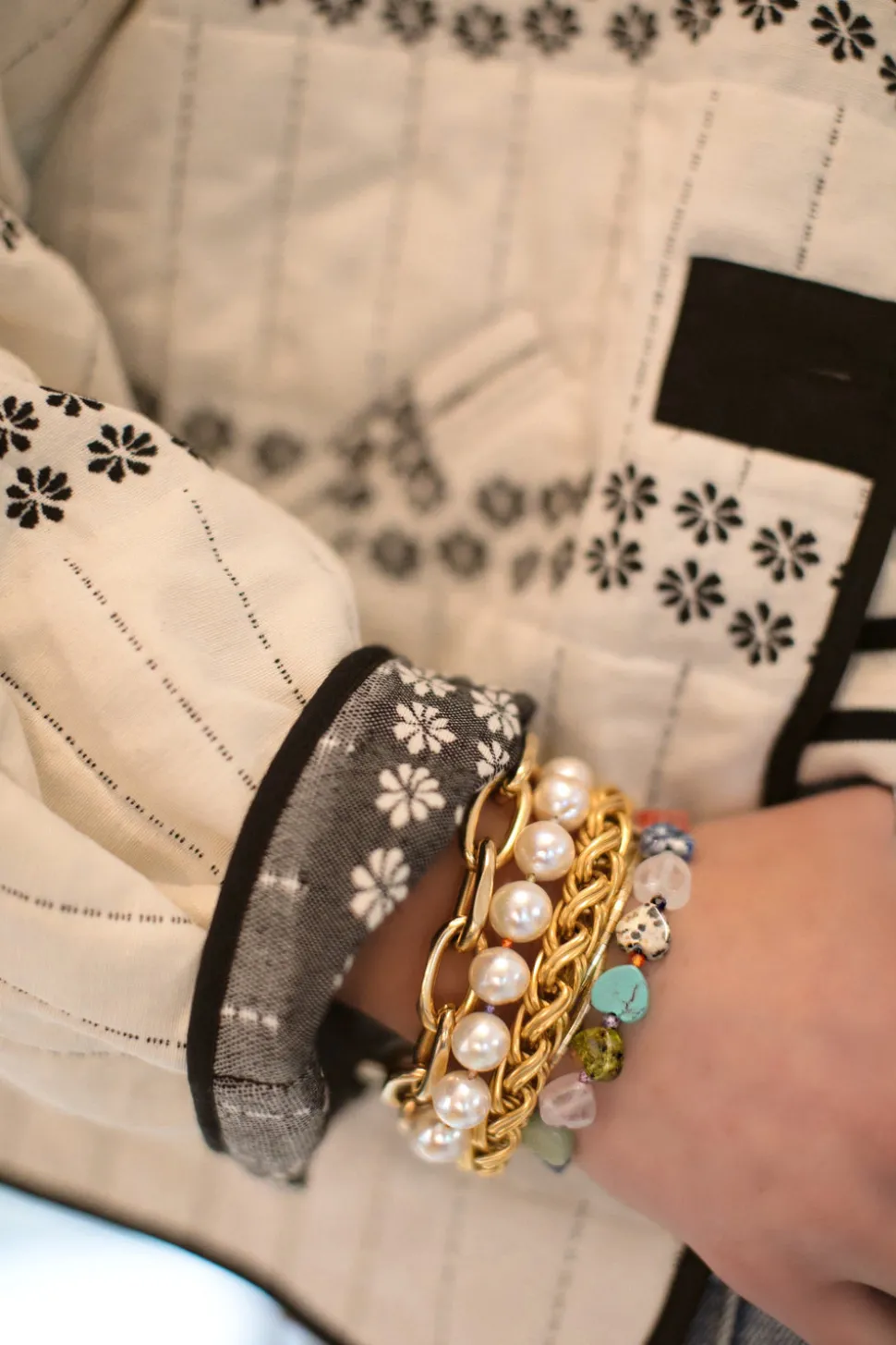 The mother-daughter duo behind Brinker + Eliza combine their experience in metalsmithing and fashion to create incredibly unique jewelry that feels custom-made. Employing pearls, shells, and earth’s most prized organic forms, these are pieces to be not just worn but treasured. Fun, chic, colorful, and inimitable, the Heidi Bracelet is formed from a strand of heart-shaped semi-precious stones, no two of which can ever be alike.