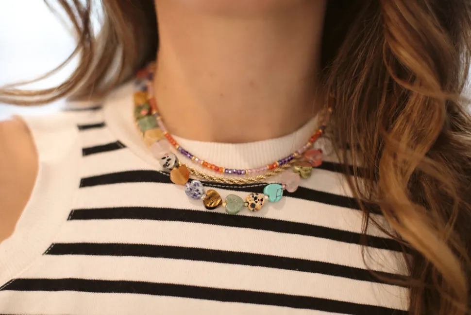 The mother-daughter duo behind Brinker + Eliza combine their experience in metalsmithing and fashion to create incredibly unique jewelry that feels custom-made. Employing pearls, shells, and earth’s most prized organic forms, these are pieces to be not just worn but treasured. Fun, chic, colorful and inimitable, the Heidi Necklace is formed from a strand of heart-shaped semi-precious stones, no two of which can ever be alike.