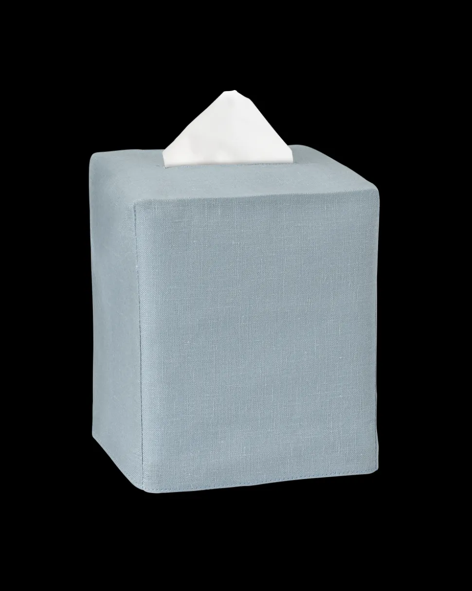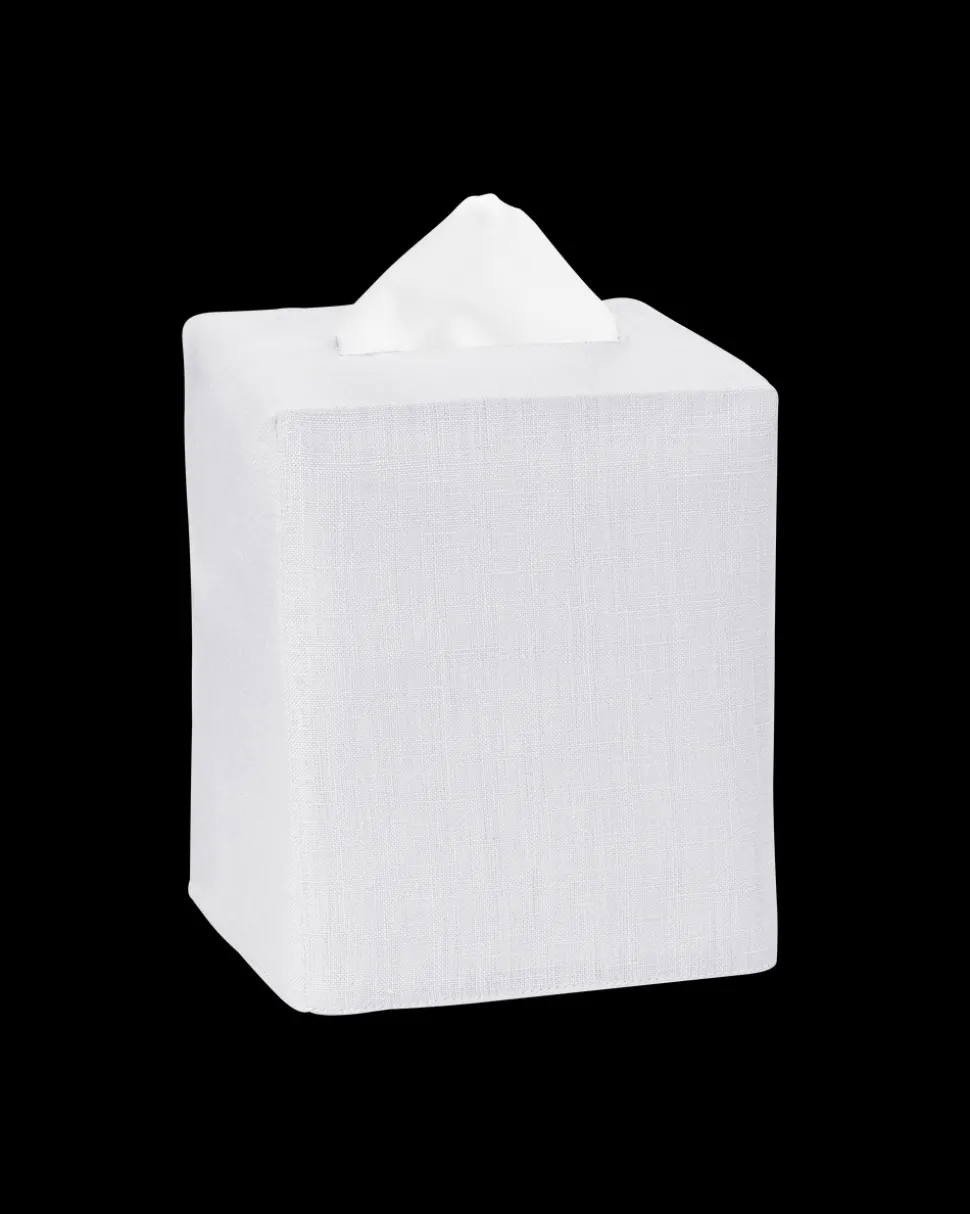 Available in seven colors. One tissue box cover. 100% Italian linen. Imported.