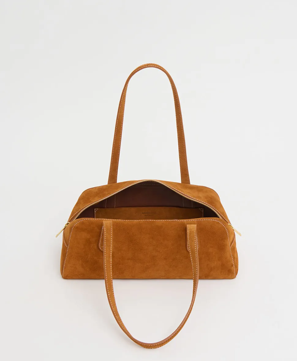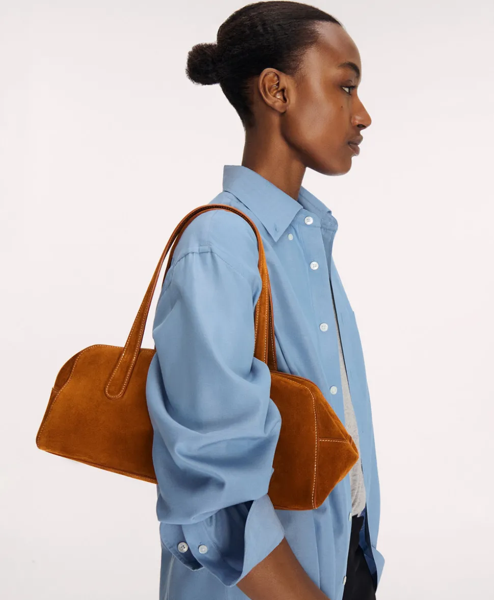 Founded in 2013, Mansur Gavriel redefines luxury through its distinctive approach to color and form. Born out of a passion for art and design, Rachel Mansur and Floriana Gavriel created two simple silhouettes—launching with just a bucket and tote. The brand’s designs, dreamt up in New York and crafted in Italy, continually challenge the notions of what expression can be. The Helios in Saddle Suede features a sleek, elongated east-west shape with comfortable shoulder straps for effortless wear. Its softly structured design offers a polished yet relaxed look, making it ideal for everyday use.