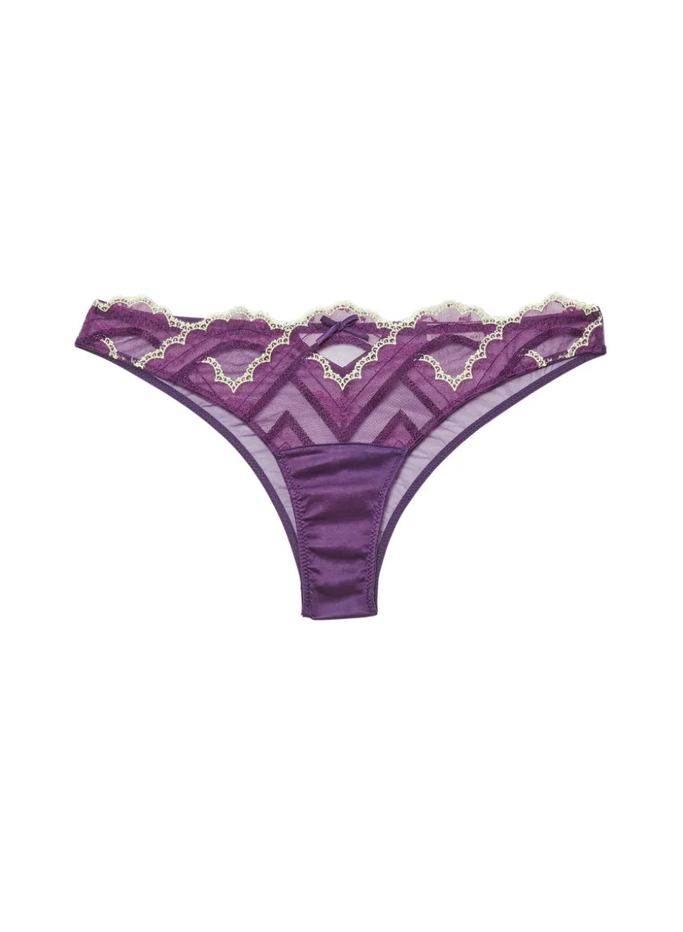 Inspired by Charles Baudelaire’s masterful collection of poetry entitled “Les Fleurs du Mal,” Jennifer Zuccarini founded Fleur du Mal with the belief that wearing beautiful lingerie should be an everyday affair. Tastefully provocative, the luxury brand has amassed a cult following of devotees who adore the sultry and empowering pieces. Major butterfly effect. The midnight purple Hendrix Embroidery Cheeky features stunning lace embroidery on sexy sheer tulle ground. Ultra flattering cheeky cut with mesh back and keyhole detail. Pair the experience with the matching Hendrix Embroidery Demi Bra & Garter Belt.