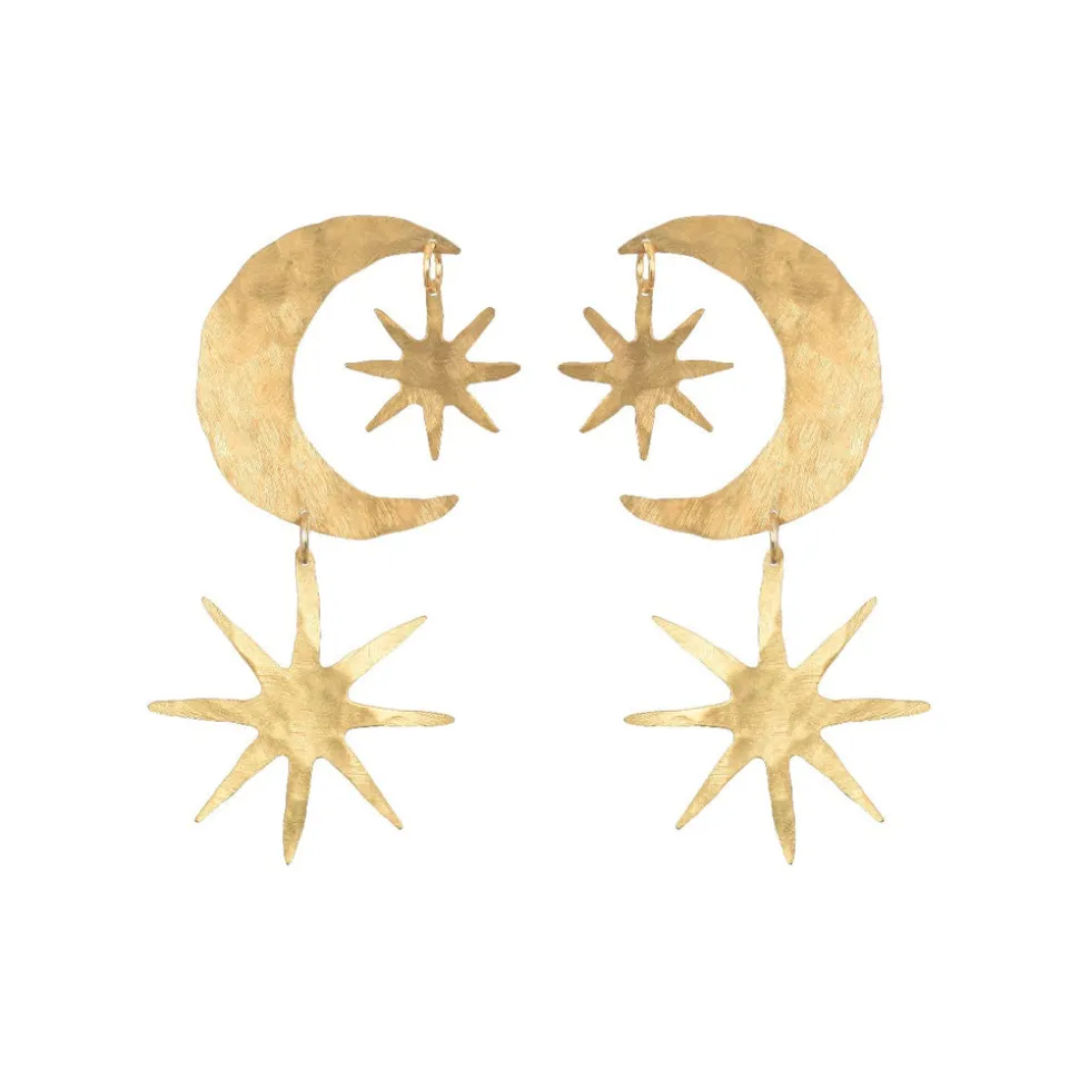 Founded in 2002 by designer Jade Gedeon, We Dream In Colour is powered by a team of women at their North Shore studio in Boston. Each piece of jewelry is assembled by hand, and the company works hard to operate in a socially conscious fashion every step of the way while creating their whimsical, elegant designs. The Hespera Earrings feature hand-shaped celestial motifs that shimmer with hammered textural warmth.