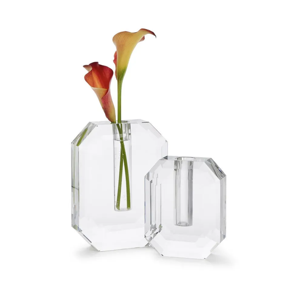 Started in a couple’s Westchester home in 1969, Two’s Company is a single destination for a wide range of stylish contemporary gifts, homewares, and accessories. From chinoiserie dish collections to accents for the sofa, the brand’s offerings are once sophisticated and accessible, making it an ideal gifting source for weddings, babies, new homes, birthdays, and more. Transform your living space into a haven of elegance with the Hex Crystal Vase, Set of 2. Crafted from crystal clear glass these vases feature a stylish hexagon shape, adding a modern touch to any room. Handmade with precision, these sharply cut vases are perfect for showcasing your favorite blooms or standing beautifully on their own as a decorative accessory. Each cut reflects light so beautifully that however displayed, it is sure to elevate your home with great style.