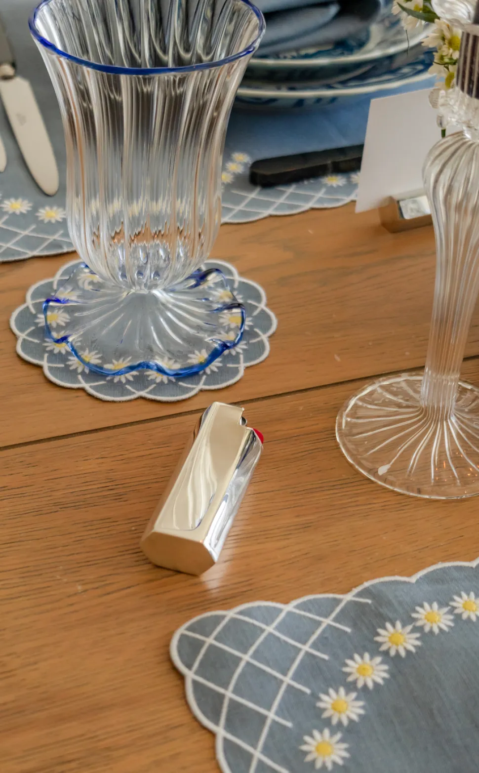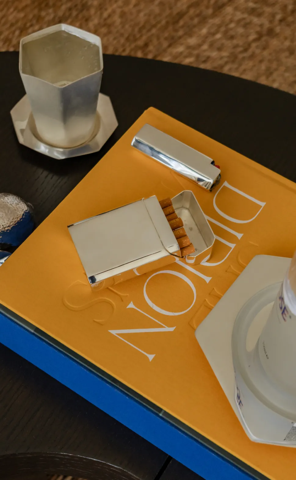 Esencial Hogar’s founder, Celina Wright, wants every gathering around the table to be a memorable one. What began as a small online shop based in El Salvador offering globally sourced treasures has developed into its own collection of table linens—with fabrics sourced from India and finished by hand in El Salvador—designed to elevate the everyday. Sleek, sculptural, and unapologetically bold, the Hexagon Lighter Cover is cast in silver-plated brass to transform the humble lighter into a statement piece. With its faceted silhouette and satisfying weight, it’s designed to spark more than just flames—it sparks conversation. A seamless match to Le Clopier, it’s the kind of detail that turns a moment into a mood.