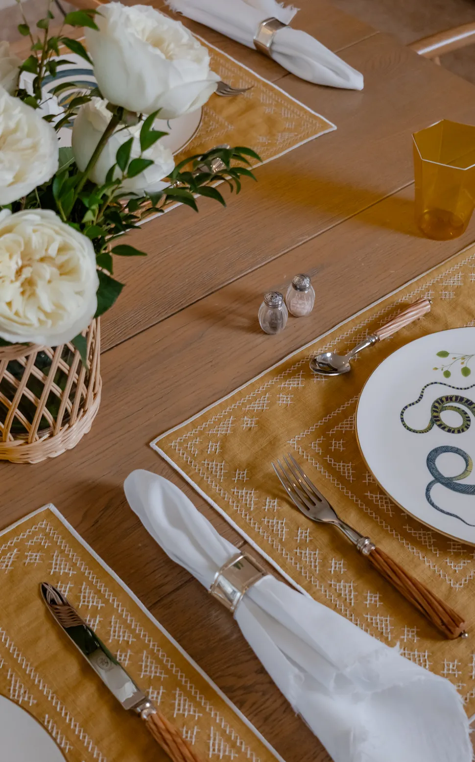 Esencial Hogar’s founder, Celina Wright, wants every gathering around the table to be a memorable one. What began as a small online shop based in El Salvador offering globally sourced treasures has developed into its own collection of table linens—with fabrics sourced from India and finished by hand in El Salvador—designed to elevate the everyday. The Hexagon Napkin Rings, Set of 4 bring understated elegance to any tablescape. With their sleek, sculptural silhouette, these silver-plated accents complement a variety of linens and tableware, making them a timeless finishing touch for both everyday dining and special occasions.