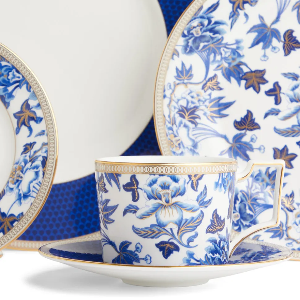 For over 260 years, Wedgwood has produced timeless, eclectic stoneware and china that has graced the tabletops of kings, queens, and some of the finest dining rooms in the world. From its factory in Barlaston, England, the brand’s signature dishware and household items are thrown, modeled and decorated by artisans who spend a lifetime mastering their craft. Lavish and beautifully crafted, the Hibiscus series elevates every table with blue textured edging and lively floral patterns inspired by Wedgwood’s 200 year-old archive. The Hibiscus 5-Piece Place Setting features five dinner plates, salad plates, bread and butter plates, teacups, and saucers. The perfect gift of china.