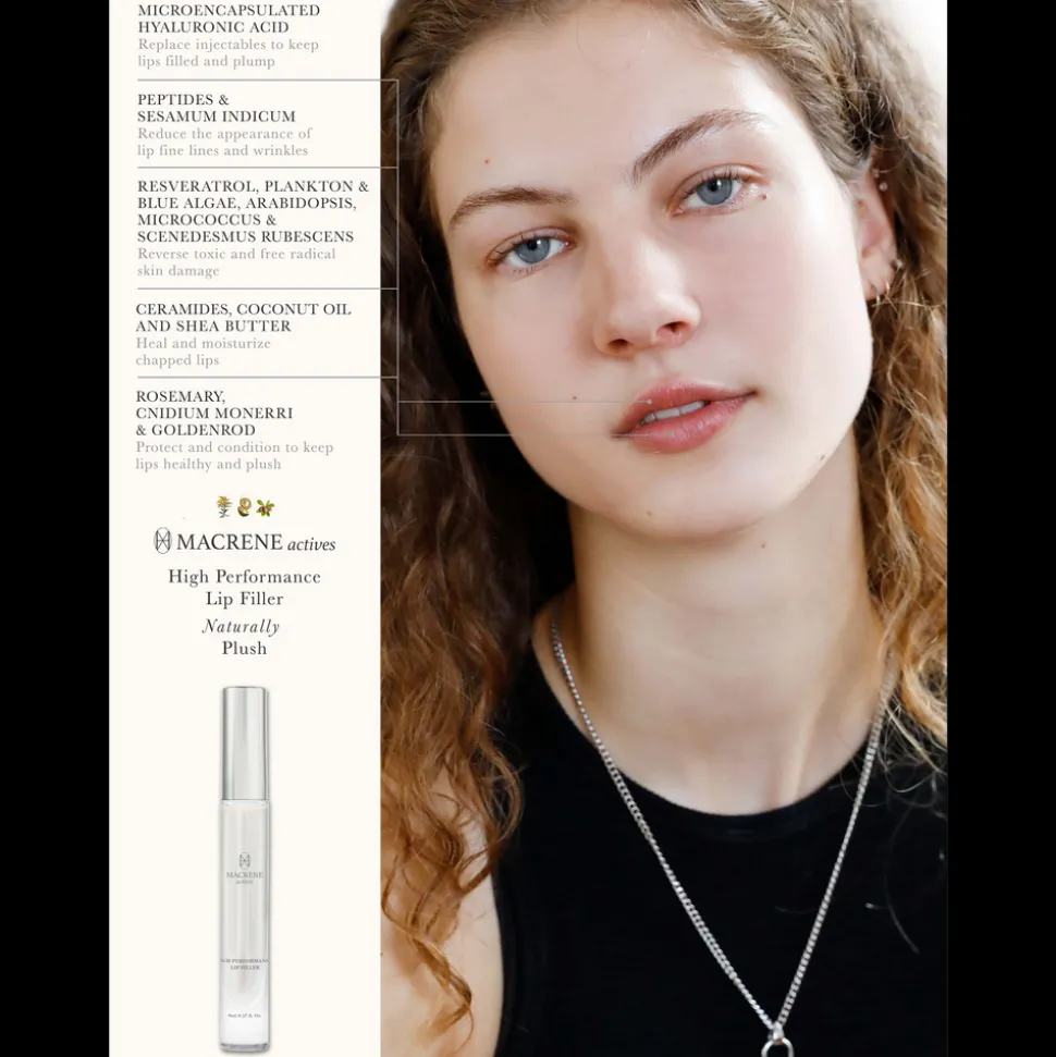 The first luxury skincare to deliver the medicinal properties from Greece cultivated over thousands of years. Dr. Macrene Alexiades MD PhD Dermatologist Scientist designed MACRENE actives to replace cosmetic procedures with clean, vegan, dermatologic, and clinically proven formulas packaged in glass. The High Performance Lip Filler plumps, moisturizes, and protects from stressors while boosting lip plushness. This naturally plush lip filler formula is packed with organic plant oils, hyaluronic acids, peptides and antioxidants to help reduce the appearance of lip fine lines while boosting injection-free plushness.