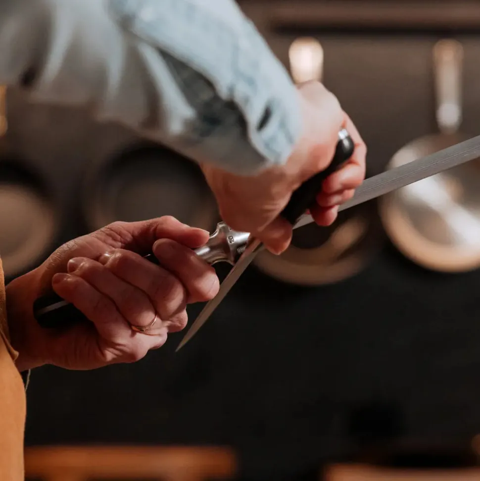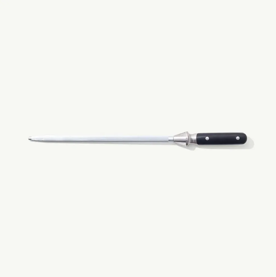 Born out of a 100-year old, family-owned restaurant supply business, Made In brings restaurant-quality, performance kitchenware to home cooks around the world. The brand sources the highest quality raw materials and designs products to the exacting standards of the world’s best chefs. Honing is used to maintain, straighten, and realign the sharp edge of your knife, which can bend and warp over time and with frequent use. This differs from sharpening, which removes tiny fibers along the edge of your blade, essentially shaving it to create a new edge. The Honing Steel can be done much more frequently than sharpening‚ to every time you use your knife.
