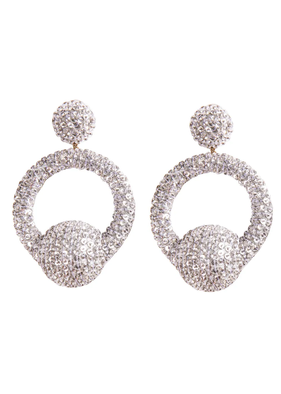 Known for her colorful, corded accessories, Rebecca de Ravenel’s accessories are inspired by the bazaars of the Far East and the designer’s childhood spent traveling between the Bahamas and Paris. Handmade in India, her whimsical, embroidered pieces are lightweight but bold and can go from casual days to elegant evenings effortlessly. The Hoop La La Earring in Crystal features a hoop and ball, formed with an intricate webbing of crystals to catch the light.