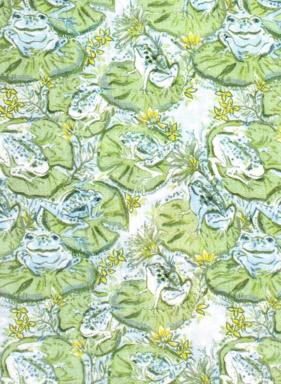100% GOTS certified organic cotton muslin. OEKO-TEX certified. Double-layer construction. Exclusive Hoppy Place print. Made in Portugal.