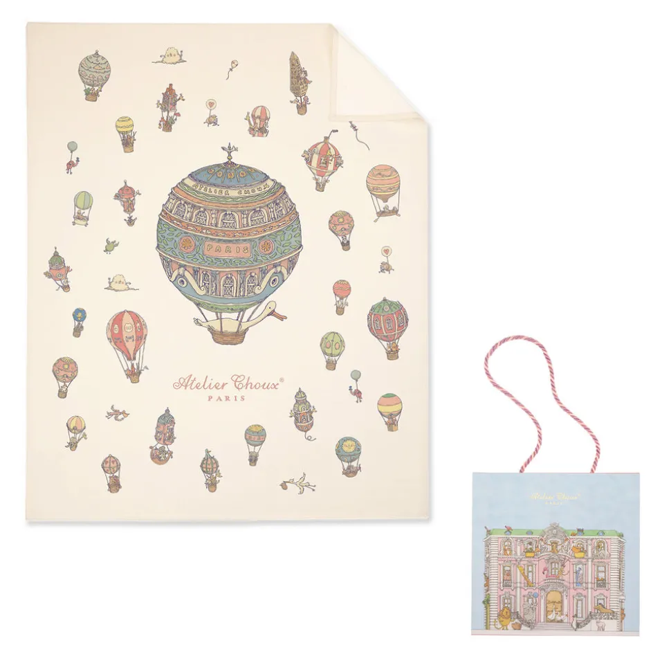 39 x 31.5 inches (100 x 80 cm)Cashmere Blanket – Hot Air BalloonsOur signature cashmere blankets are soft and luxurious essentials for the nursery. Light yet warm blankets are perfect for covering the baby all year long. Perfect for gifting, packaged in Atelier ChouxÕs signature gift box, with a magnetic closure and a silk carrying cord. Dimensions: 100 cm by 80 cm / 39 inches by 31.5 inchesComposition: 50% cashmere, 50% woolPrinted with water based, baby safe inks.Hand wash cold with gentle detergent. Squeeze gently to remove excess water, lay flat to dry. Ironing is possible at a low temperature.