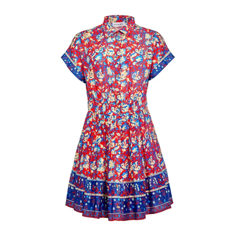 Hunter Bell brings joyful, polished pieces to life with a distinctive mix of bold pattern, thoughtful tailoring, and feminine charm. The bestselling Howard Dress returns in the rich, moody Tapestry Floral print—bringing elevated ease to every day. This beloved silhouette features a relaxed collared bodice, banded short sleeves, and a full shirred skirt for graceful volume. An elastic waist defines the shape while providing all-day comfort, and a full button front adds versatile polish. From morning coffee runs to evening plans, Howard remains an effortless go-to.