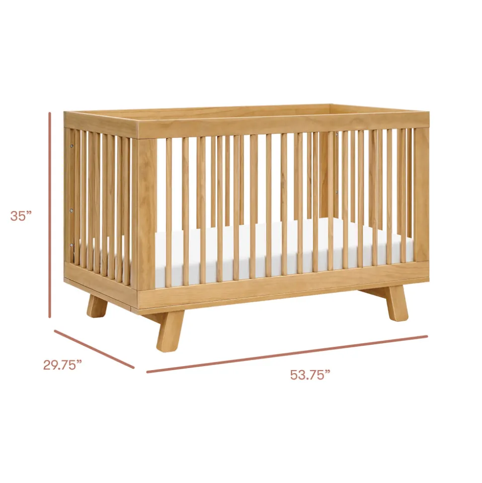 Designed in Los Angeles, babyletto creates stylish, modern nursery furniture with a focus on safety, sustainability, and intuitive design. For over a decade, the brand has empowered parents to craft spaces that reflect their values and individuality. The Hudson 3-in-1 Convertible Crib with Toddler Bed Conversion Kit in Honey is a babyletto favorite, loved for its versatile design and clean, modern lines. With rounded spindles, gently tapered feet, and a solid frame, this crib grows with your child—easily converting to a toddler bed and daybed with the included kit.