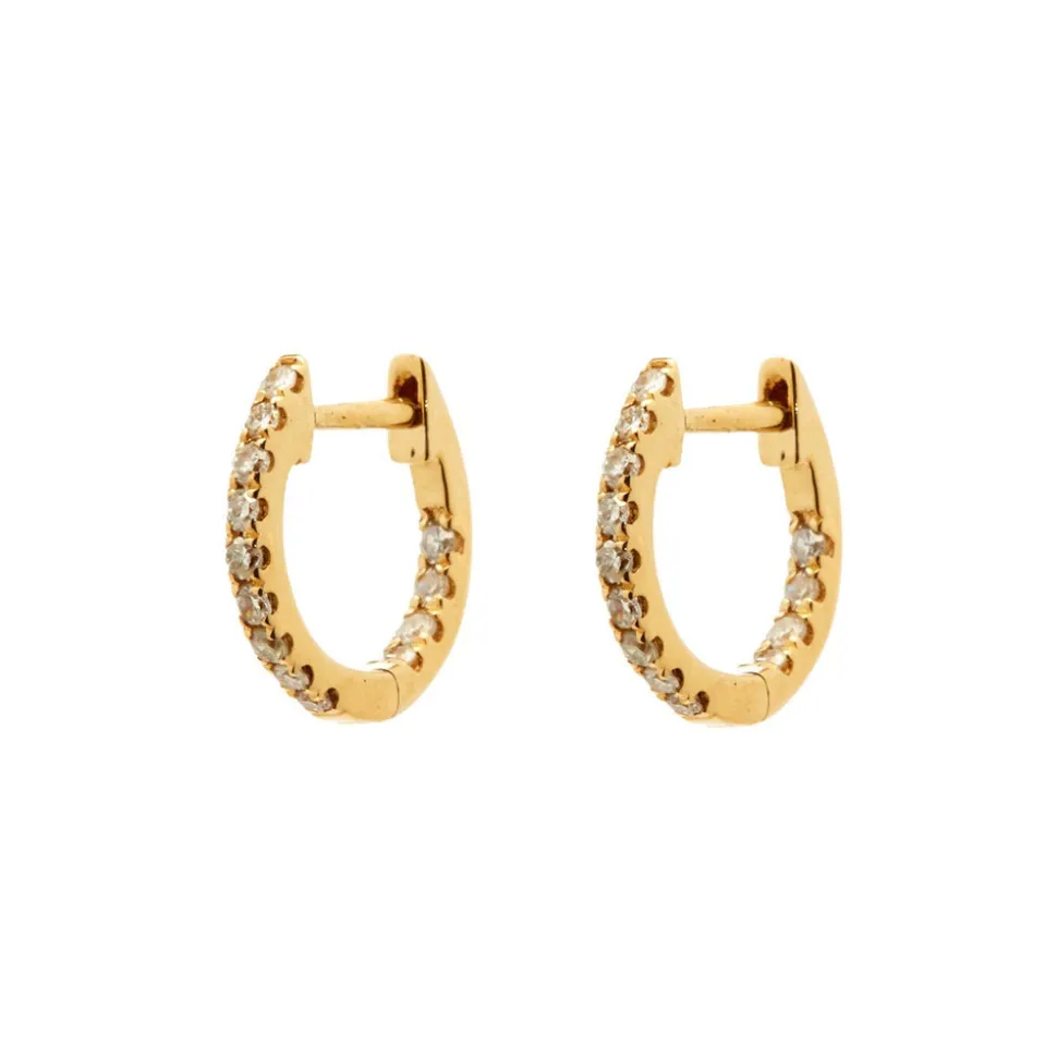 A partnership between Rosa de la Cruz and Tierney Horne, this jewelry line ties together the worlds of fashion and art with collections set to appeal across generations, and with other pieces. Inspired by vintage jewelry, as well as contemporary and modern art, these minimalist pieces spark creativity and joy, and celebrate singular style. Graceful, charming, and adorned with eye-catching white diamonds, the Huggie Hoops, Pair are scene stealers, but only if you want them to be.