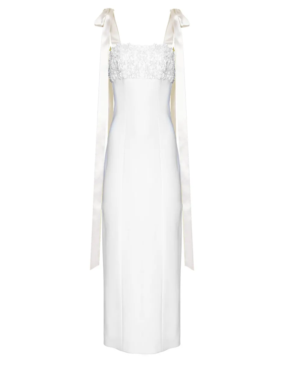 A fashion figure without parallel, since 1981 Venezuelan-born Carolina Herrera’s line has been defined by its founder’s iconic style and effortless sophistication. Under Creative Director Wes Gordon, the house of Herrera continues to cater to a new generation of glamorous women, starting with his bridal debut for the brand in Spring 2019. The collection included what has become one of the best-selling little white dresses of all time, the Hyacinth, which has been reimagined exclusively on Over The Moon with wedding-ready-white ribbon straps.