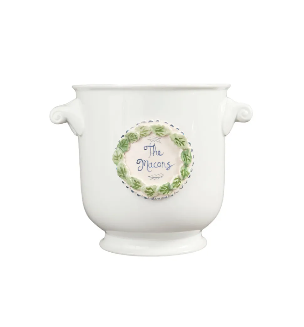 Self-taught artist Tricia Lowenfield crafts one-of-a-kind whimsical pieces that will immediately become beloved family treasures. The Ice Bucket with Monogram is a ceramic piece that’s meant for entertaining. Personalize it with your last name and place your best bubbles inside!