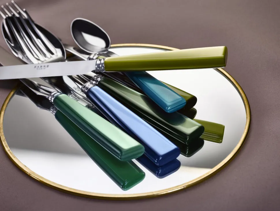 Pearl acrylic handle. 18/10 stainless steel. Set of 5. Made In France.