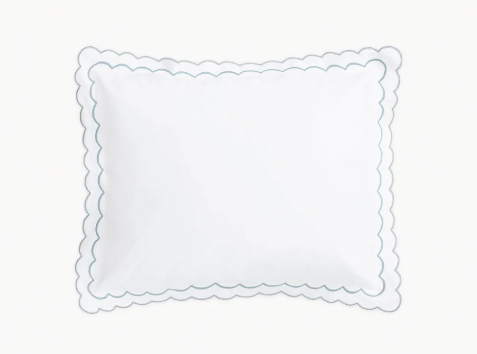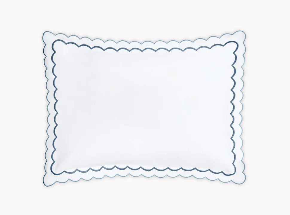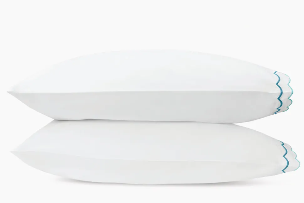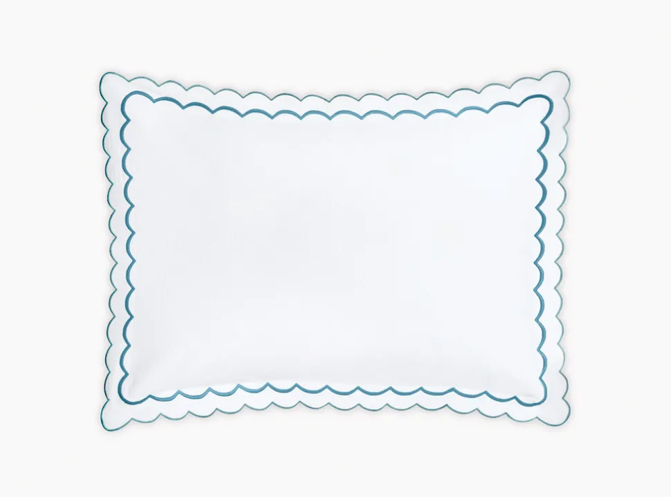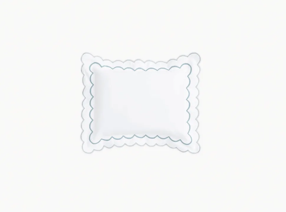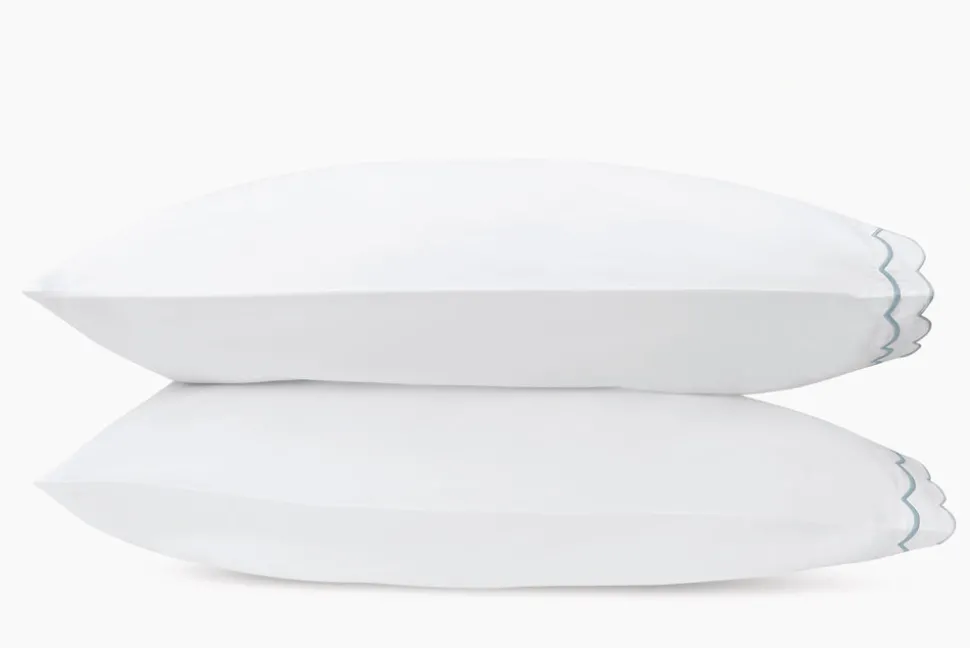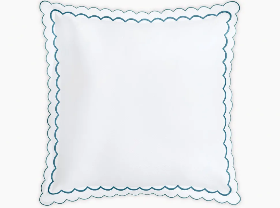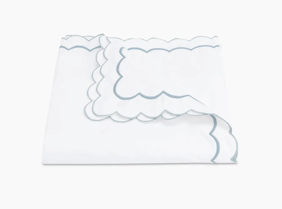 For nearly 100 years and three generations, Matouk has handcrafted luxury linens from the world’s finest materials. Their dedicated artisans in Fall River, Massachusetts are committed to creating the highest quality, most-loved bed, bath, and table linens for your home. The India Collection owes its playful sophistication to an original take on embroidery. Along its narrow, scalloped flange are two carefully stitched lines in distinct tones. The 520 thread count Ceylon percale is the base fabric for this sweet, elegant collection.