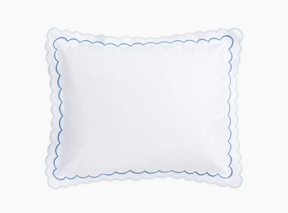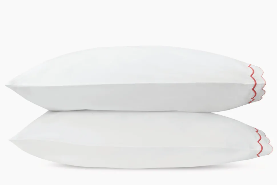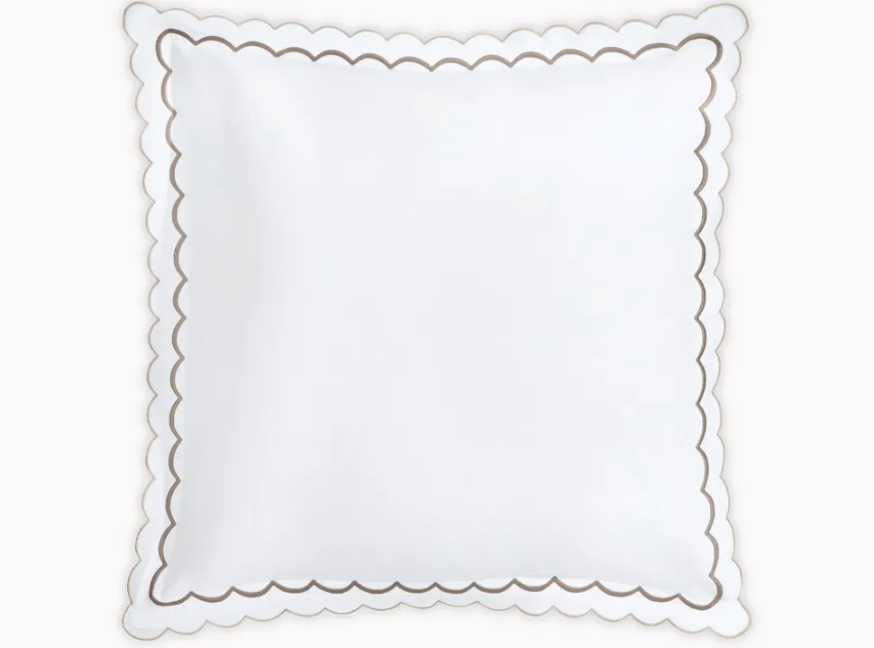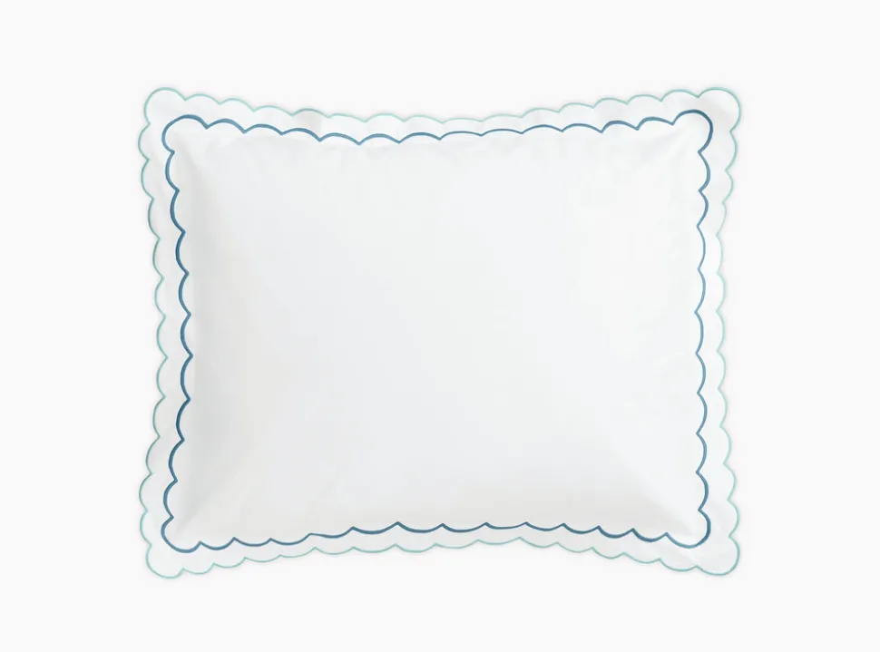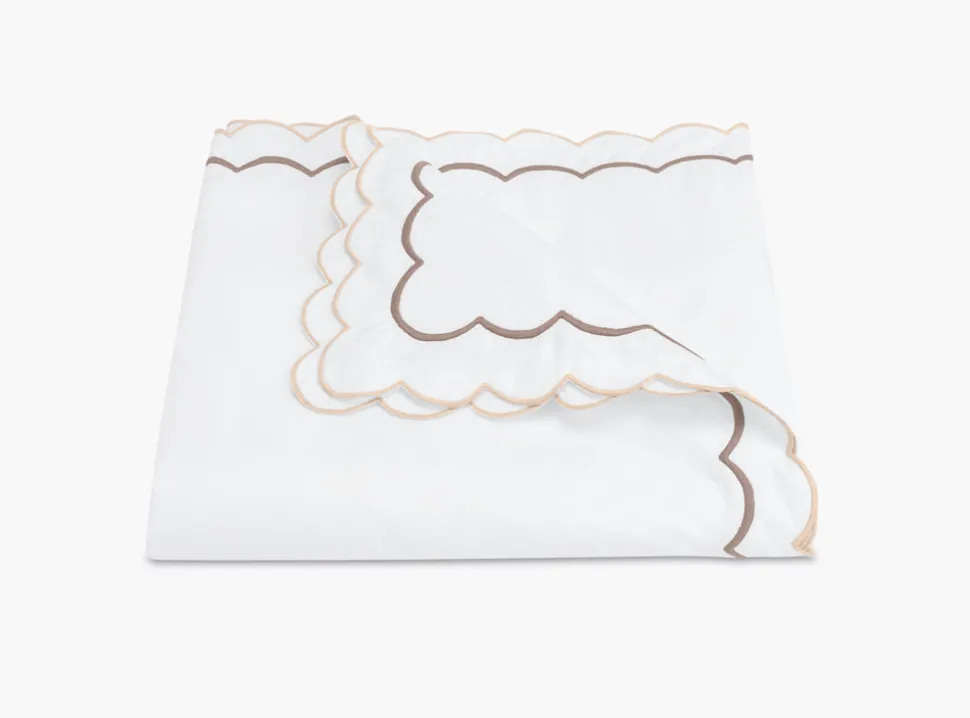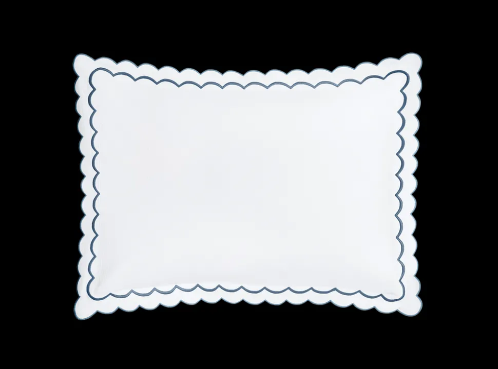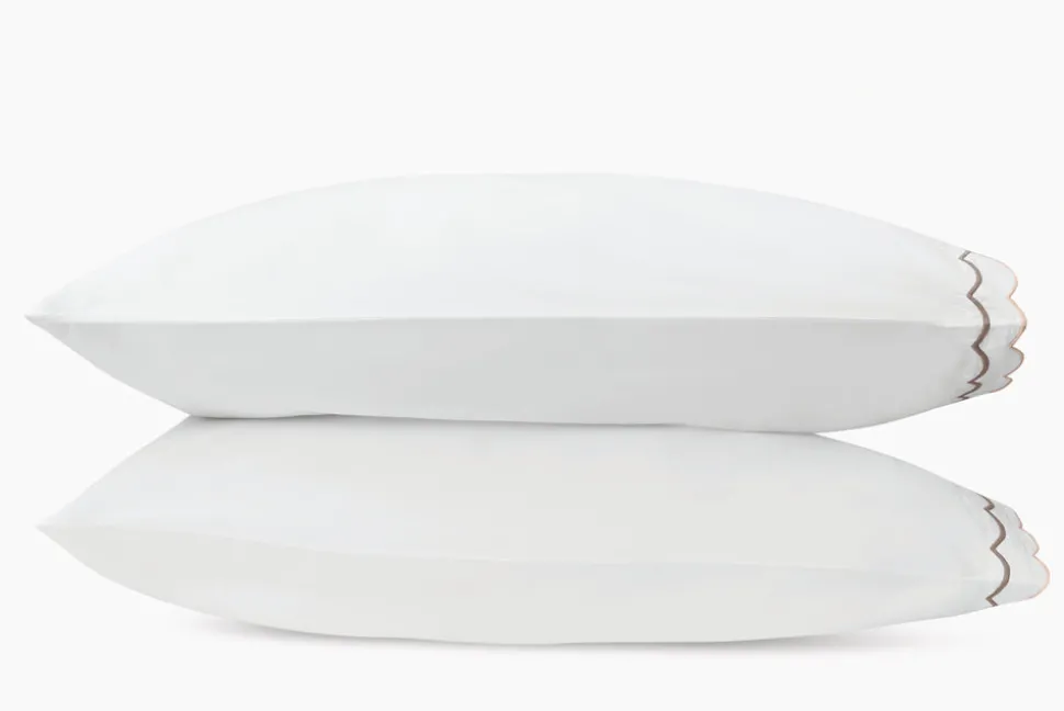For nearly 100 years and three generations, Matouk has handcrafted luxury linens from the world’s finest materials. Their dedicated artisans in Fall River, Massachusetts are committed to creating the highest quality, most-loved bed, bath, and table linens for your home. The India Collection owes its playful sophistication to an original take on embroidery. Along its narrow, scalloped flange are two carefully stitched lines in distinct tones. The 520 thread count Ceylon percale is the base fabric for this sweet, elegant collection.
