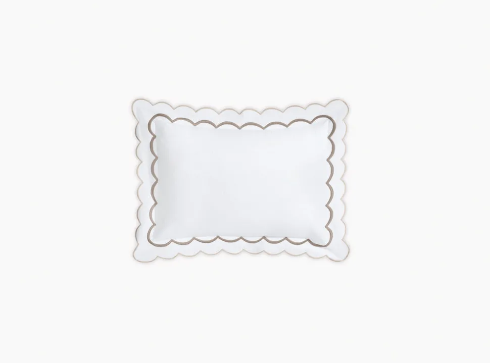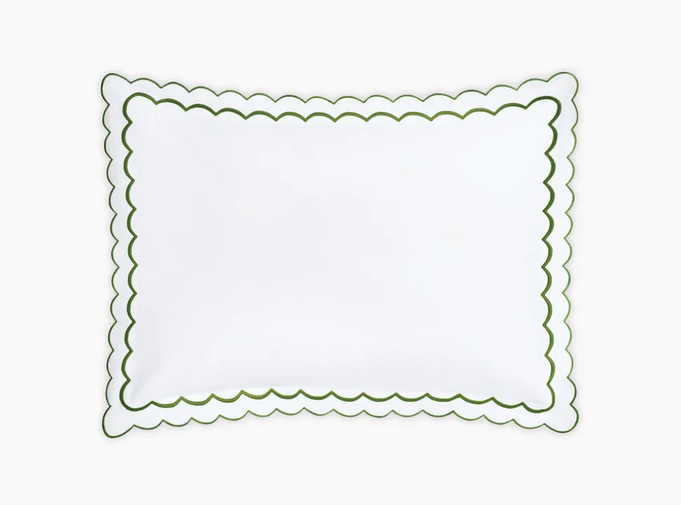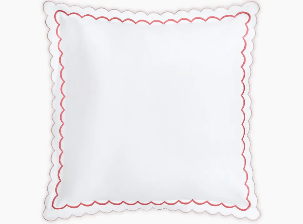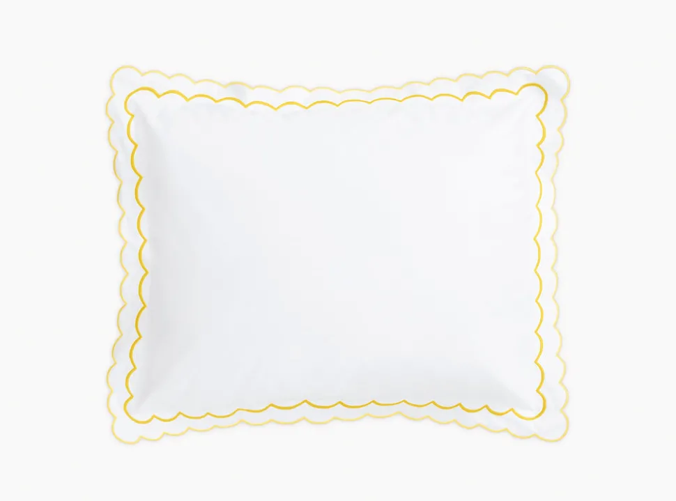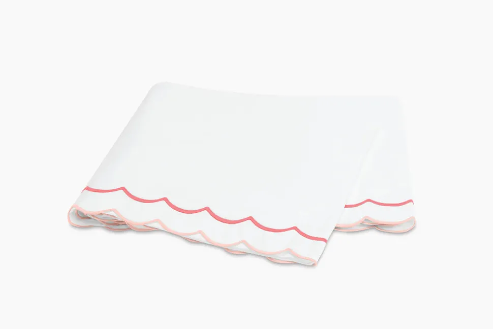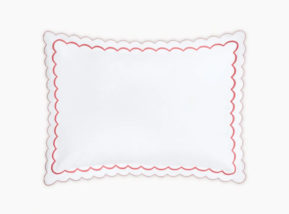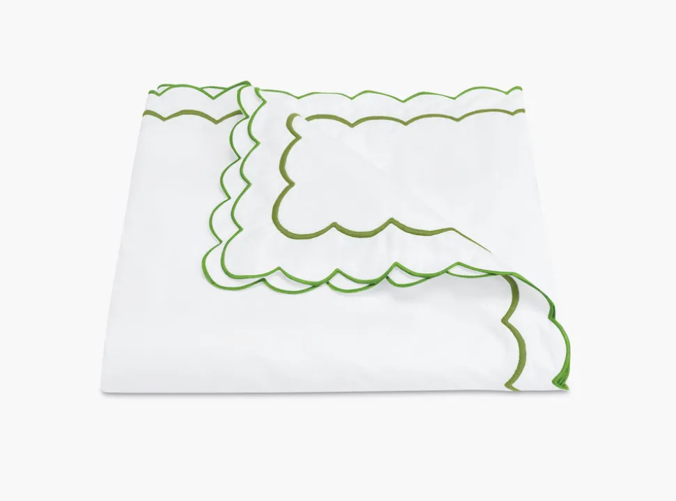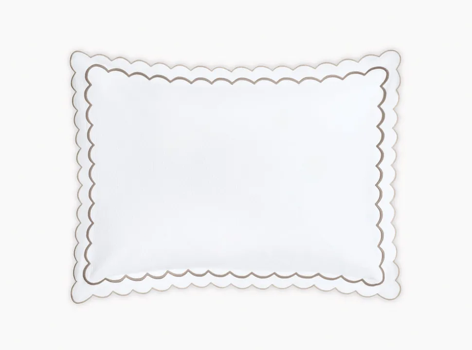For nearly 100 years and three generations, Matouk has handcrafted luxury linens from the world’s finest materials. Their dedicated artisans in Fall River, Massachusetts are committed to creating the highest quality, most-loved bed, bath, and table linens for your home. The India Collection owes its playful sophistication to an original take on embroidery. Along its narrow, scalloped flange are two carefully stitched lines in distinct tones. The 520 thread count Ceylon percale is the base fabric for this sweet, elegant collection.
