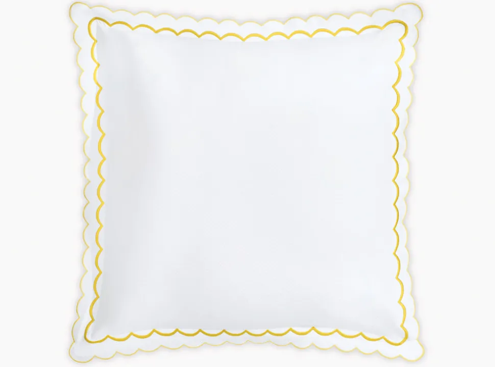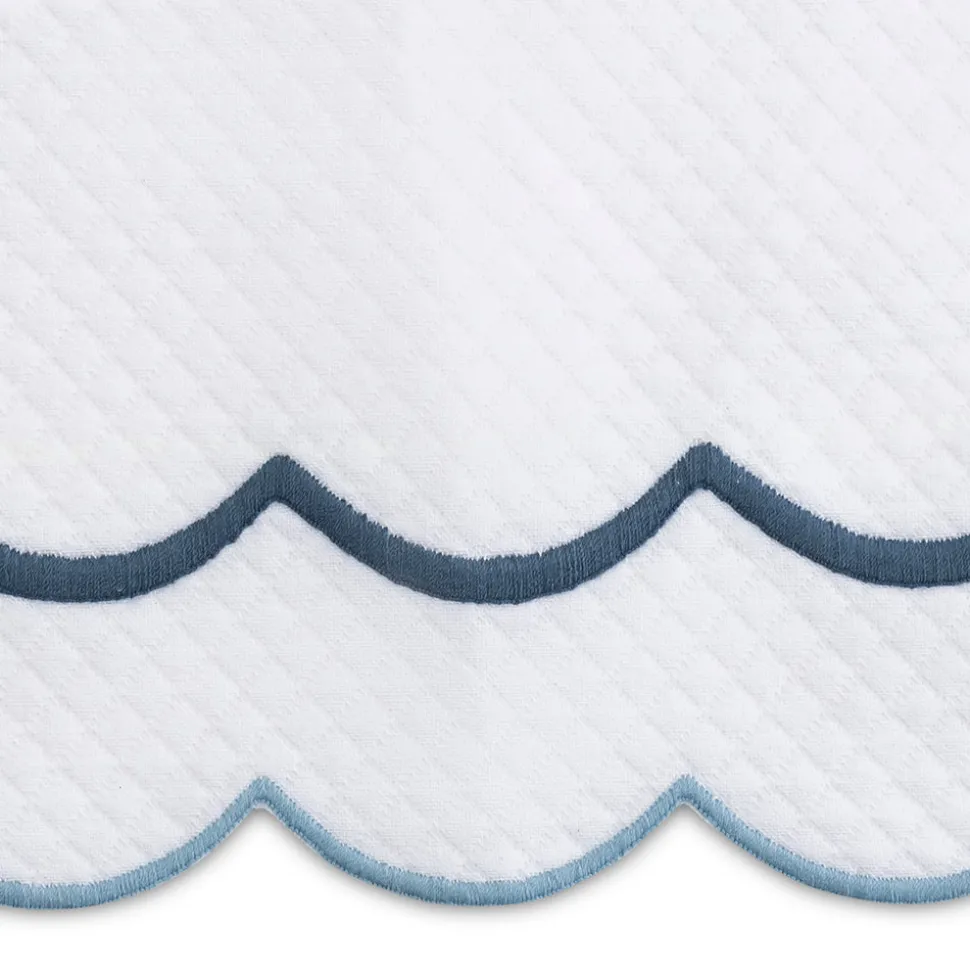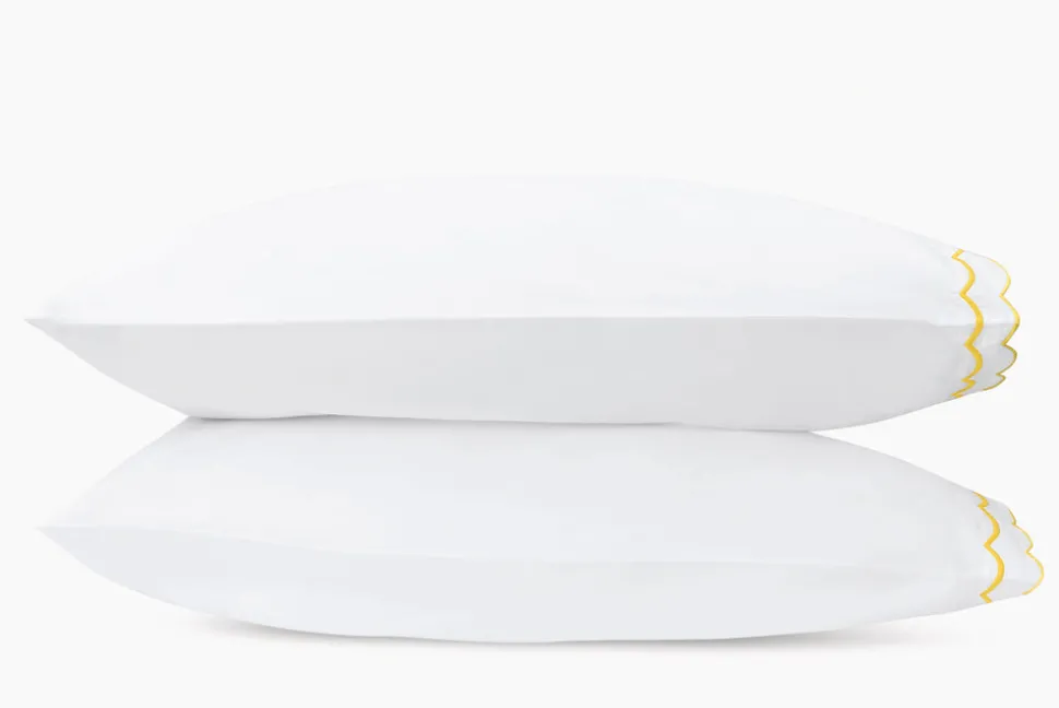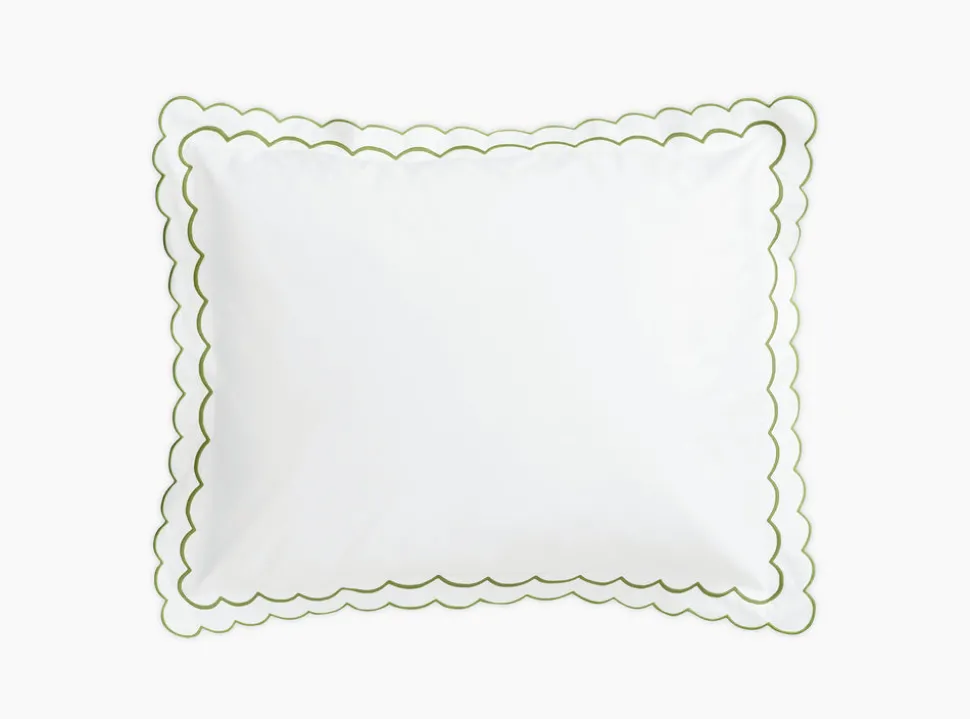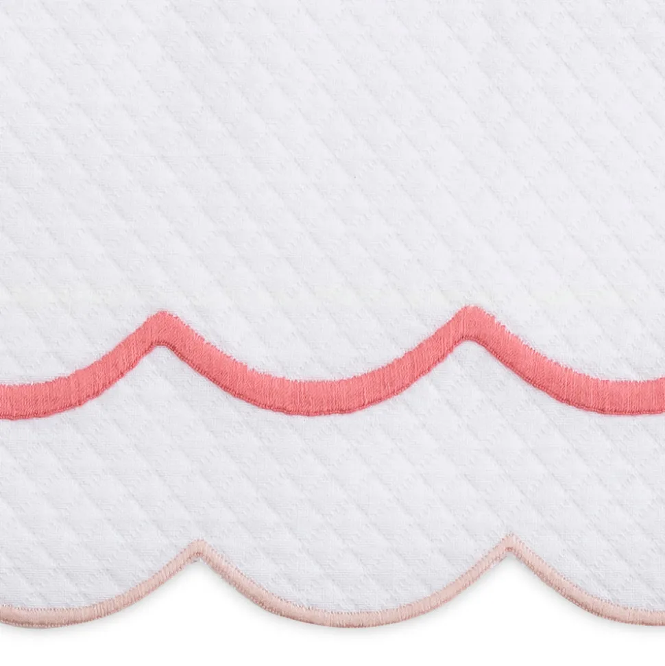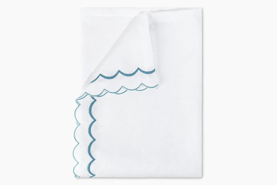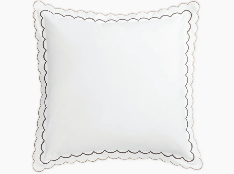 For nearly 100 years and three generations, Matouk has handcrafted luxury linens from the world’s finest materials. Their dedicated artisans in Fall River, Massachusetts are committed to creating the highest quality, most-loved bed, bath, and table linens for your home. The India Collection owes its playful sophistication to an original take on embroidery. Along its narrow, scalloped flange are two carefully stitched lines in distinct tones. The 520 thread count Ceylon percale is the base fabric for this sweet, elegant collection.