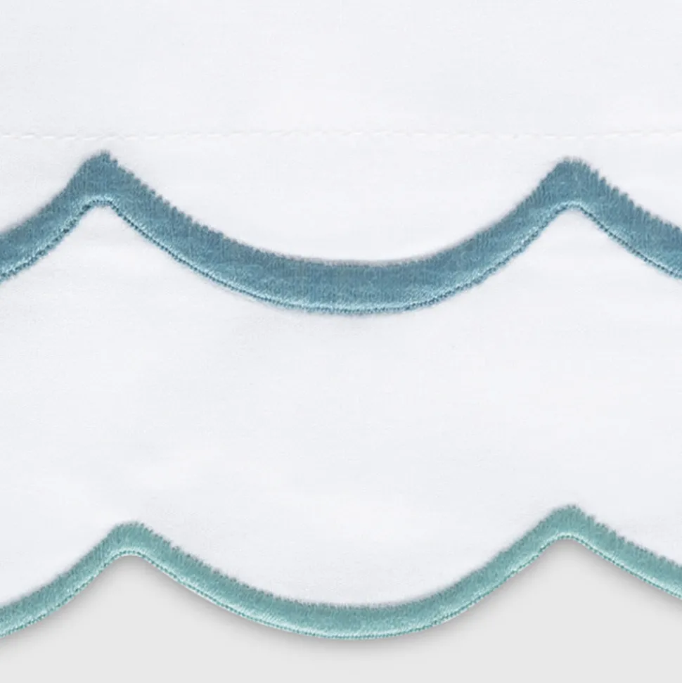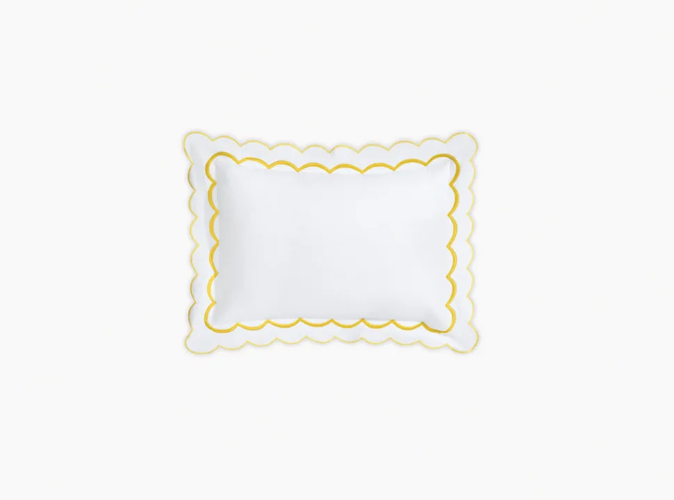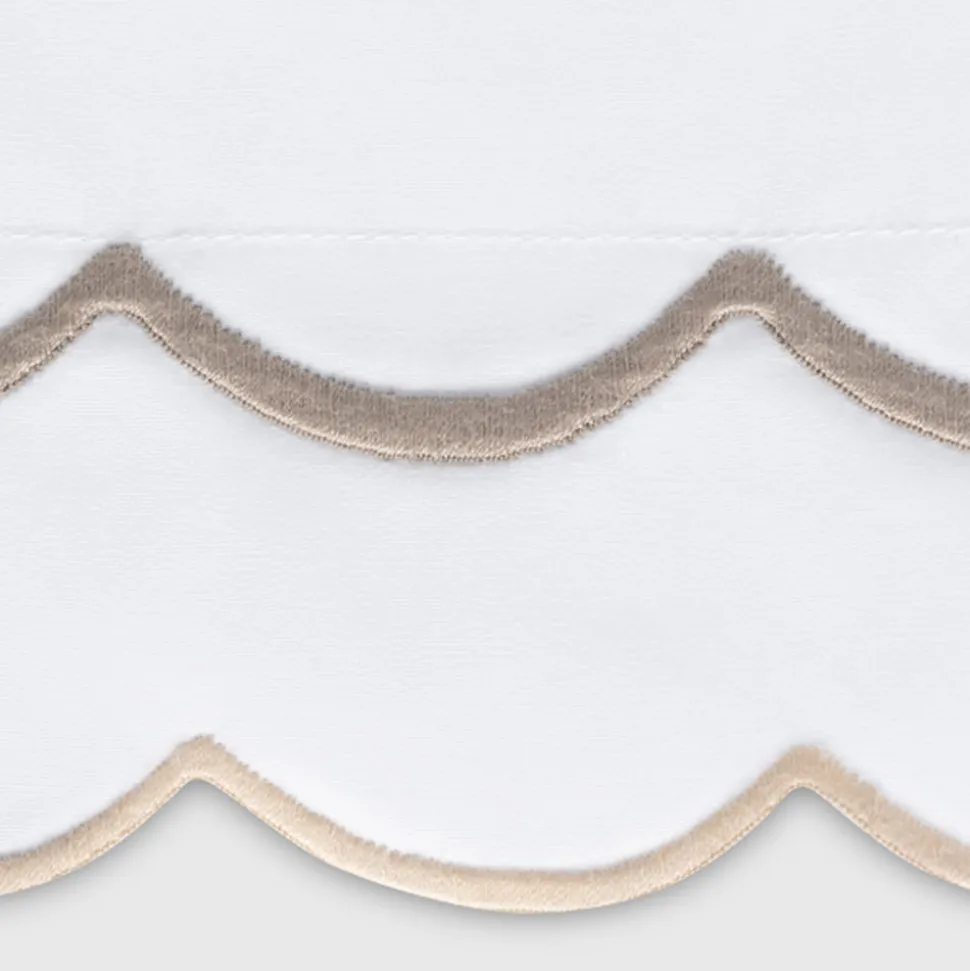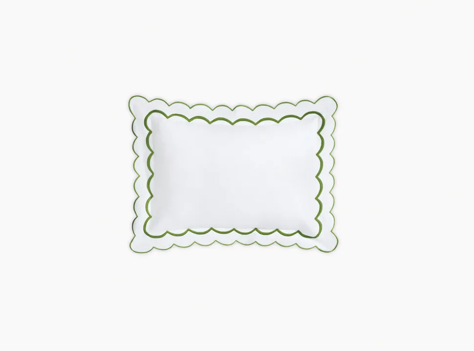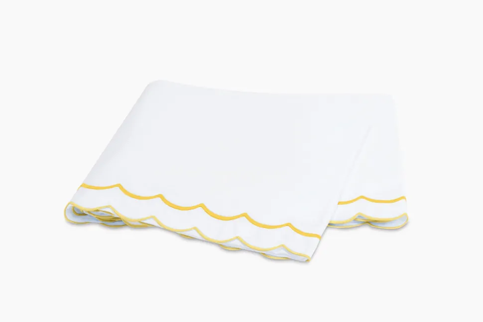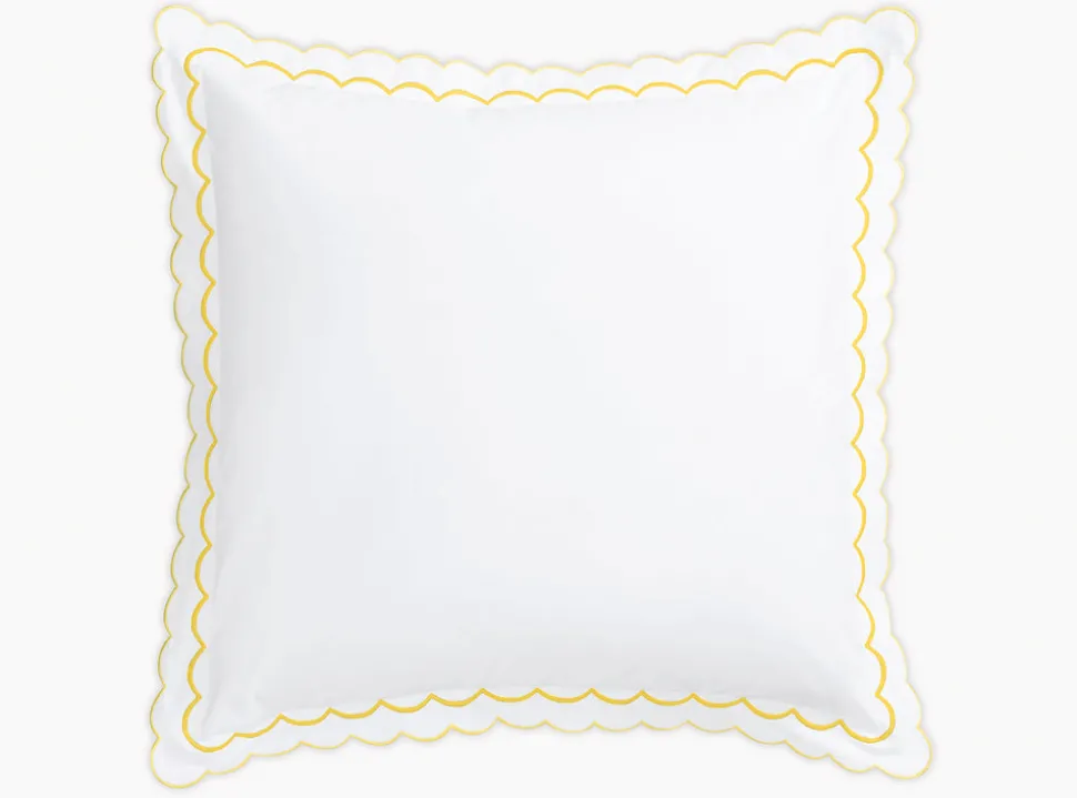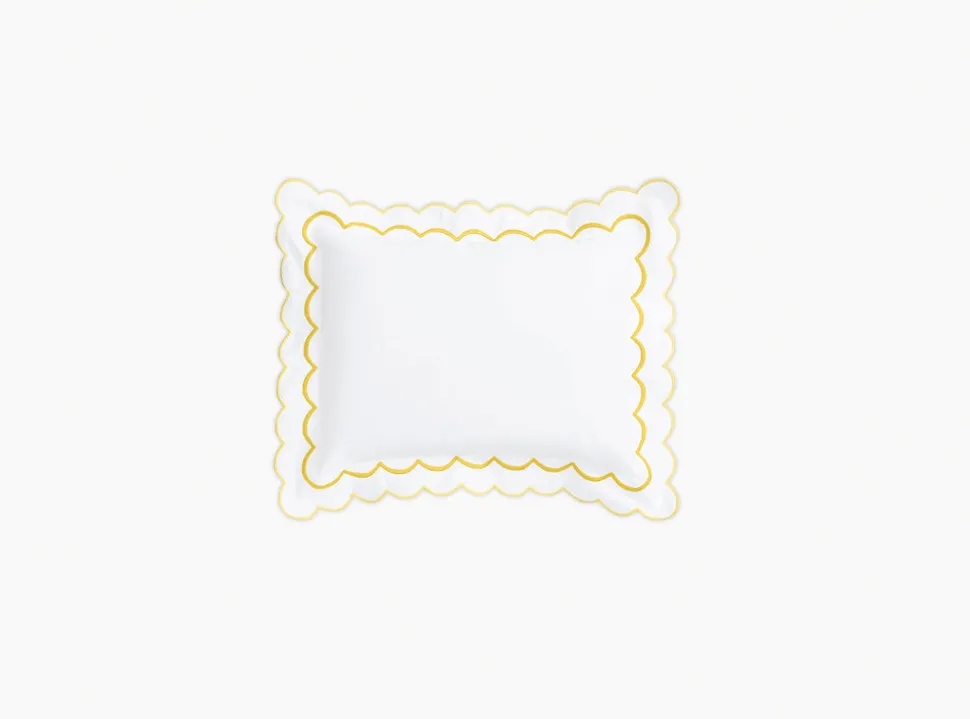 For nearly 100 years and three generations, Matouk has handcrafted luxury linens from the world’s finest materials. Their dedicated artisans in Fall River, Massachusetts are committed to creating the highest quality, most-loved bed, bath, and table linens for your home. The India Collection owes its playful sophistication to an original take on embroidery. Along its narrow, scalloped flange are two carefully stitched lines in distinct tones. The 520 thread count Ceylon percale is the base fabric for this sweet, elegant collection.